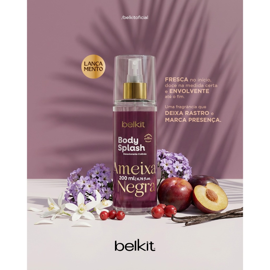 Body Splash Belkit 200ml - Alta fixação, projeção, perfumaria fina | Dia e noite