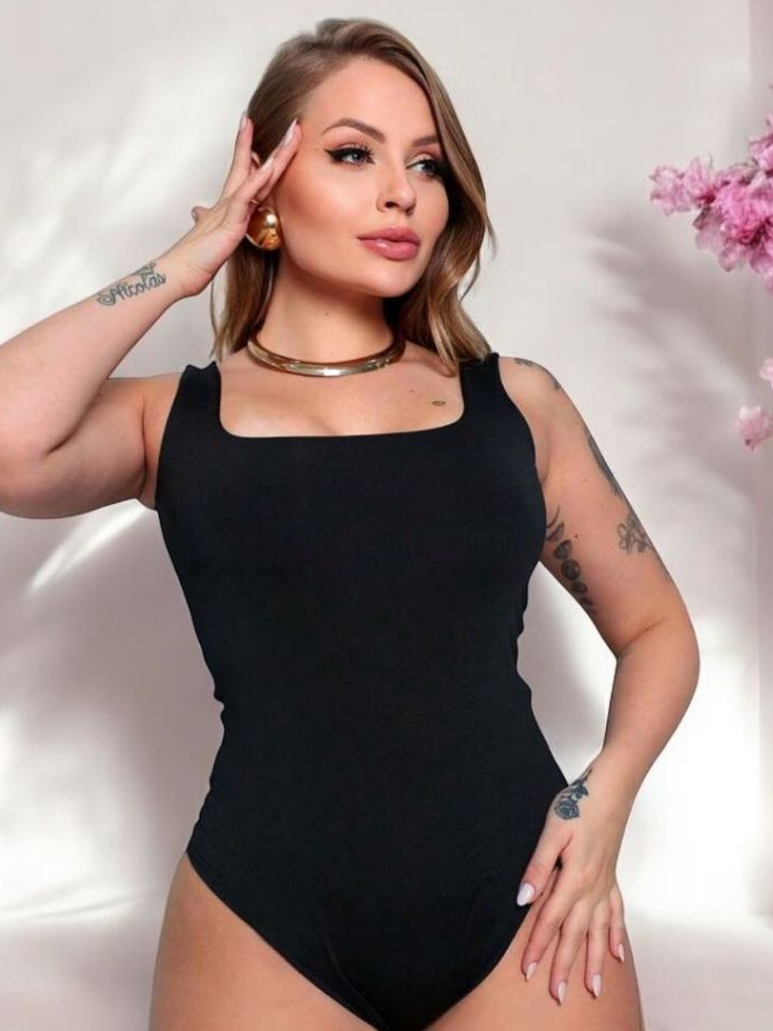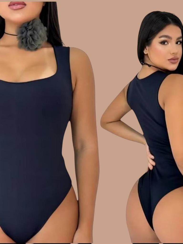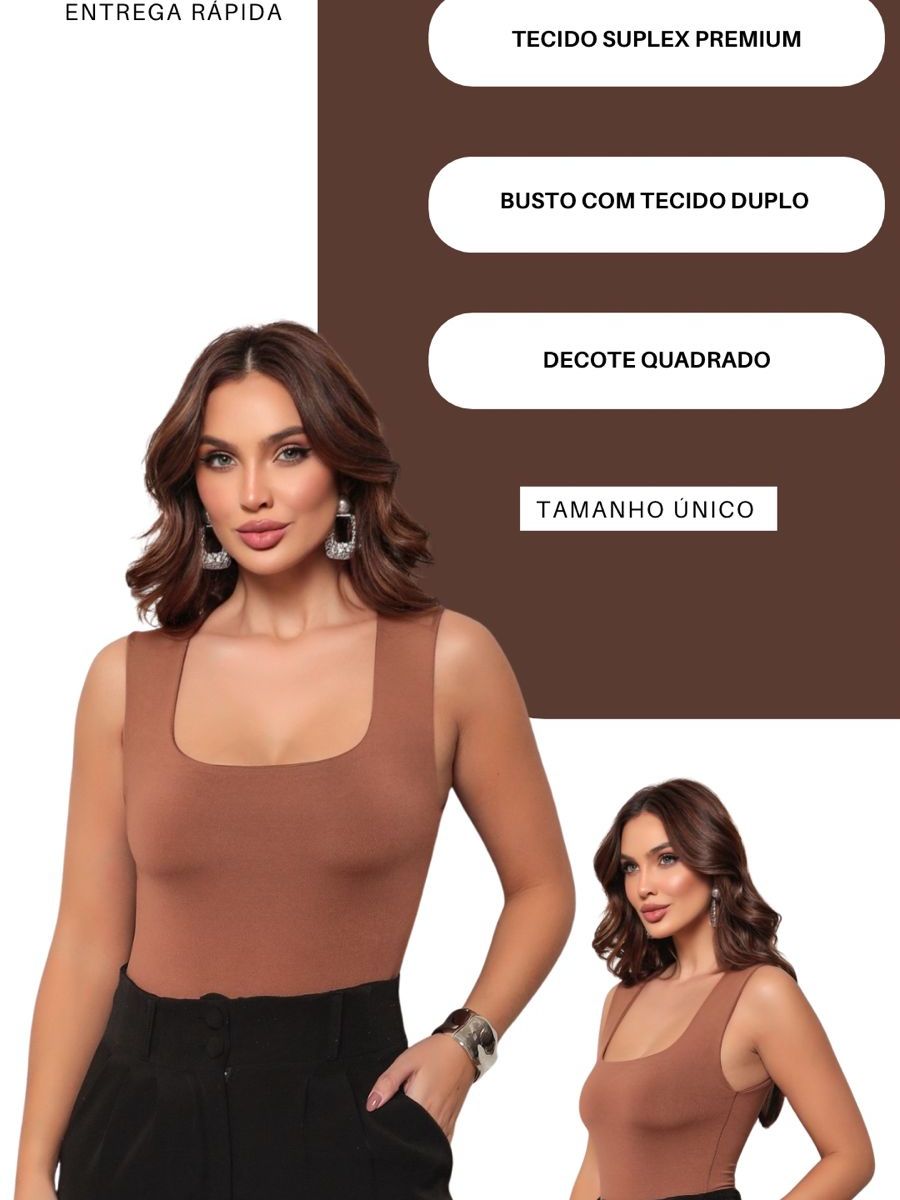 Body Feminino Collant Regata Suplex Decote Quadrado Forrado Casual Confortável Moda Elegante