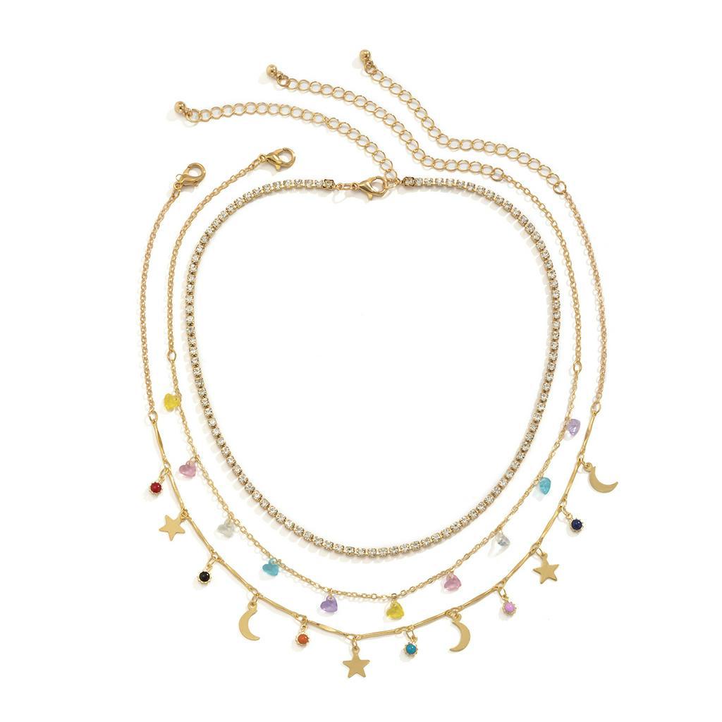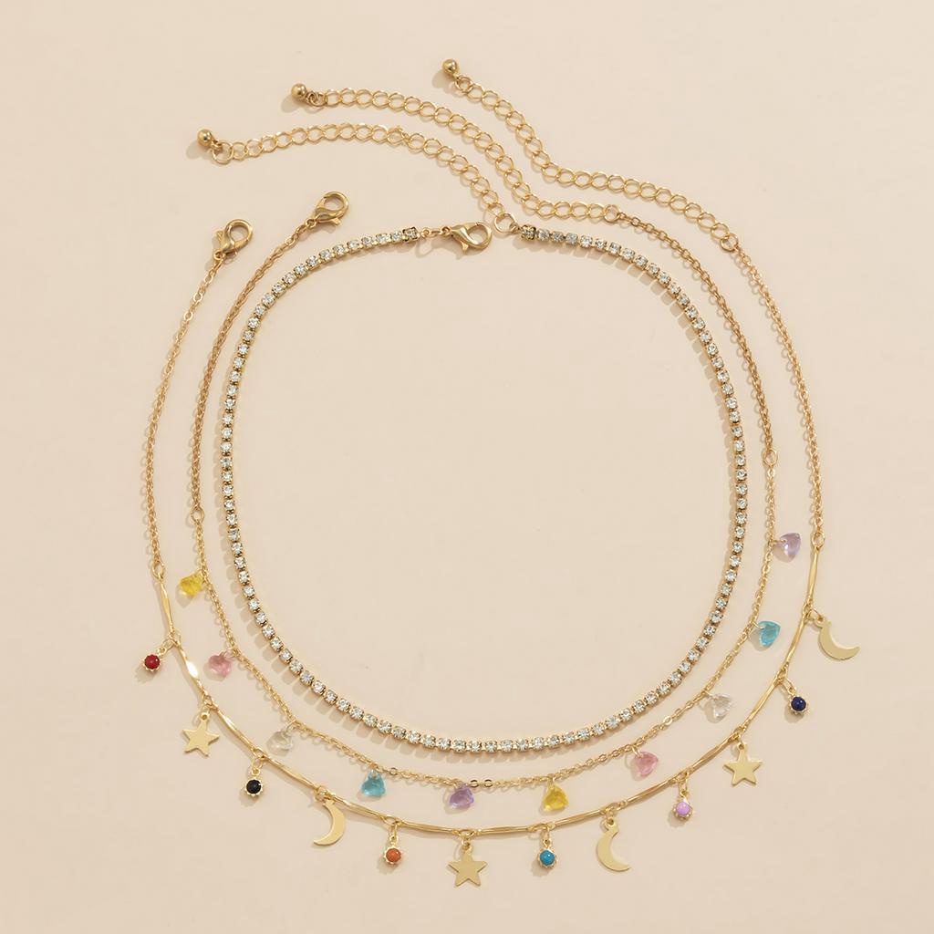 Gargantilha Separável De 3 Camadas Com Pingentes De Estrelas E Lua , Joias Modernas De Strass