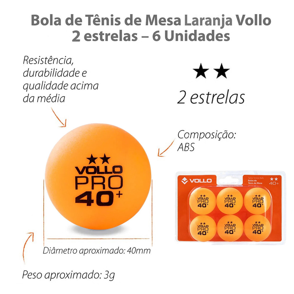 Bola Tênis de Mesa Vollo 2 Estrelas 6 Unidades Original