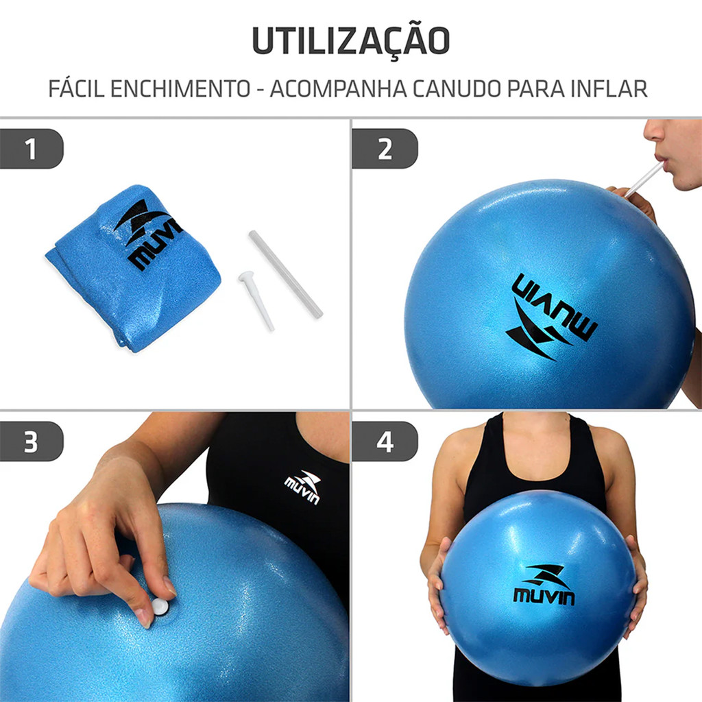 Bola de Pilates Overball Azul 25cm Muvin para Treino Funcional Yoga Alongamento e Fisioterapia