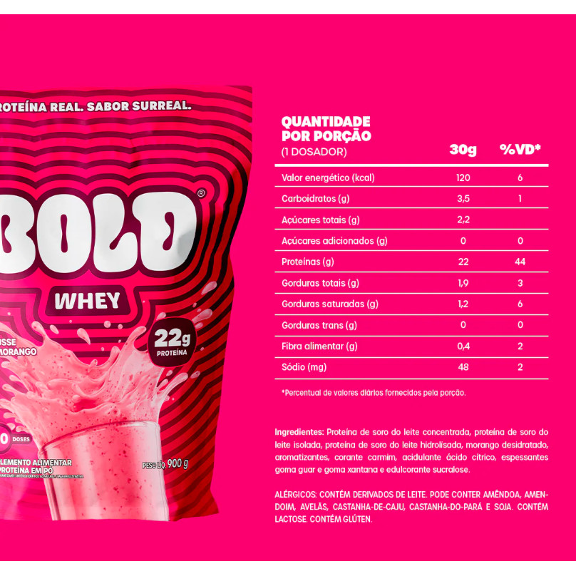 Bold Whey Protein 900g Mousse de Morango – Suplemento Proteico Original