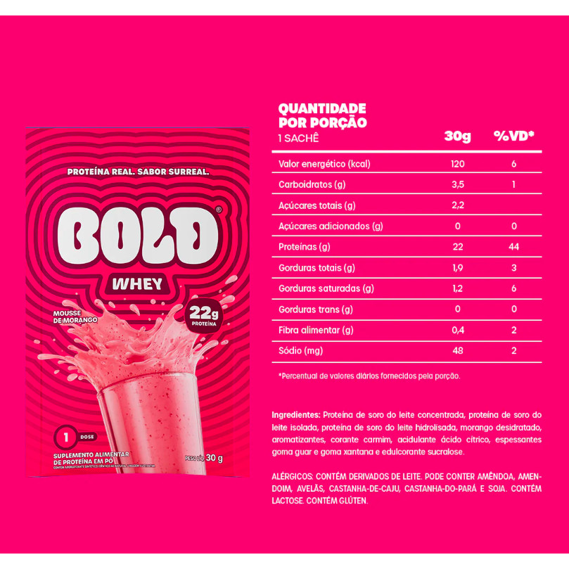Bold Whey Protein Sachê 30g Mousse de Morango – Suplemento Proteico Original