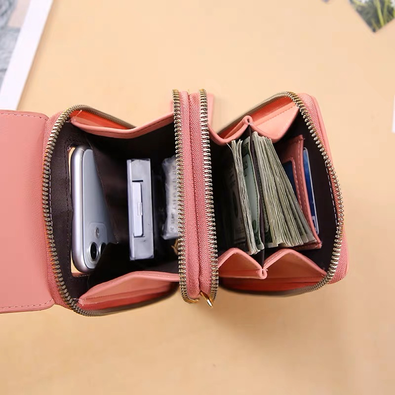 Bolsa Carteira Feminina Porta Celular Com 2 Zíper Tipo Carteira Transversal De Couro