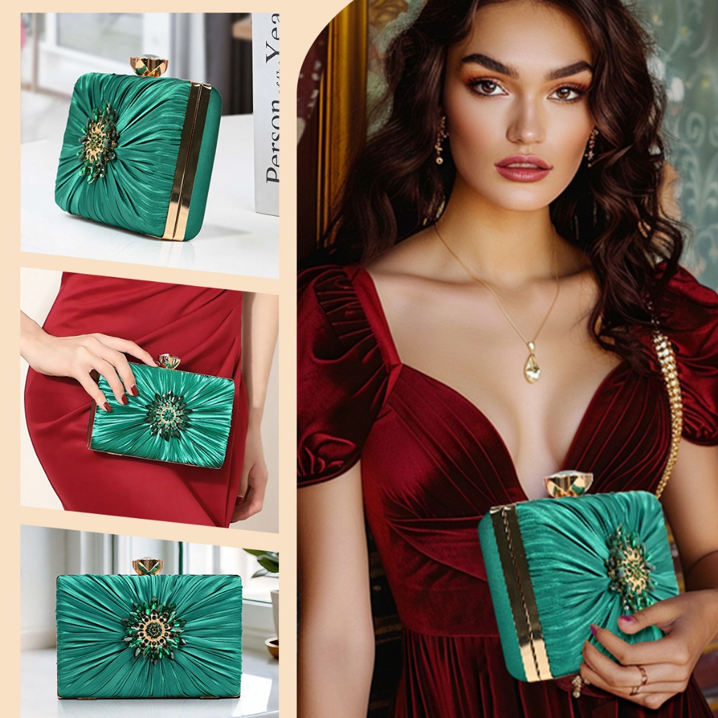 Bolsa Clutch Feminina com Brilho Pedrarias para Casamento e Festa Alça Removível Y1108