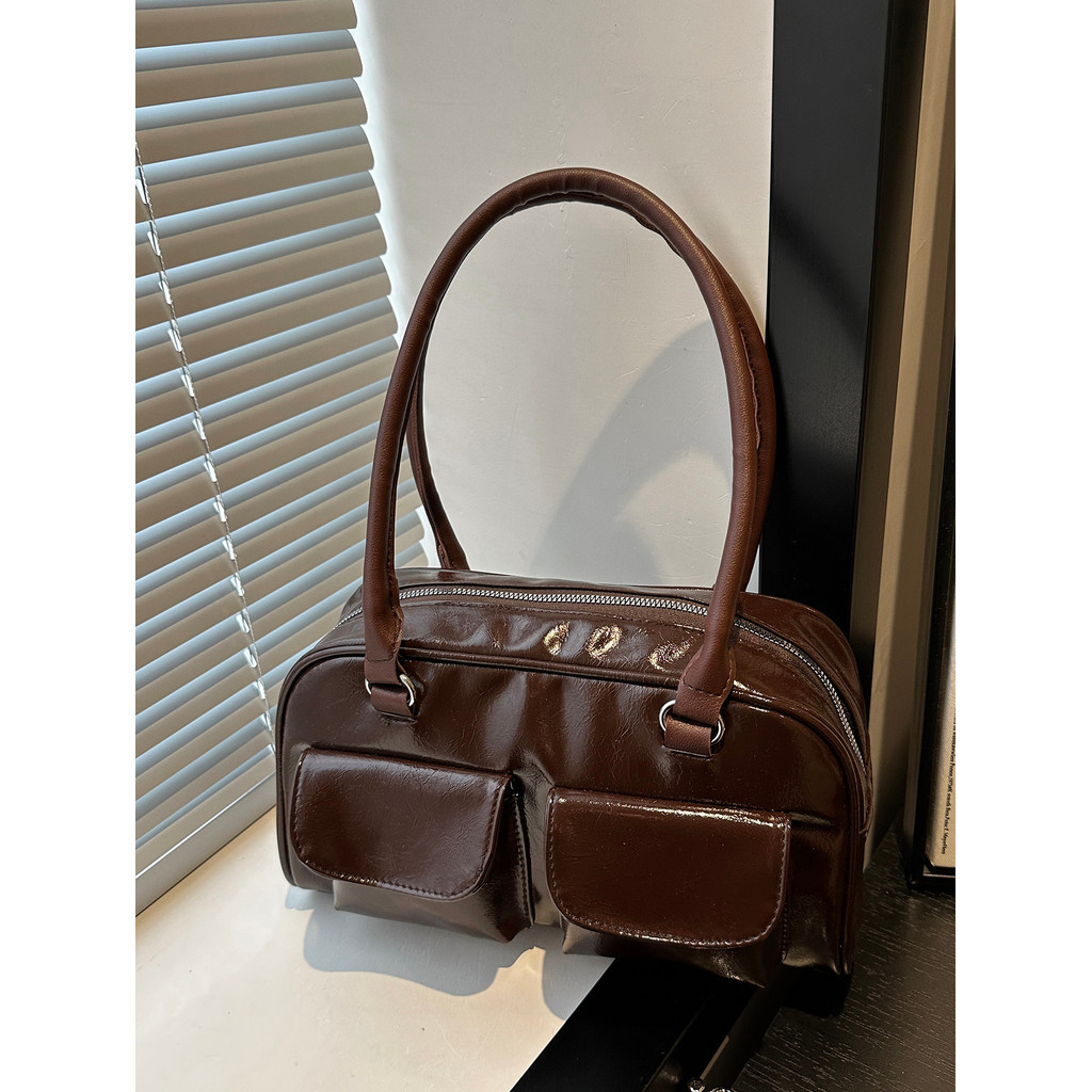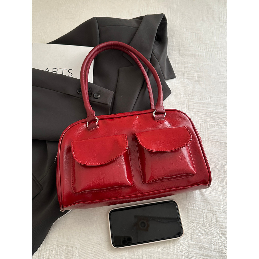 Bolsa De Ombro Feminina Coreana Y2K Com Fivela Brilhante , Couro PU Macio Bolsos Duplos