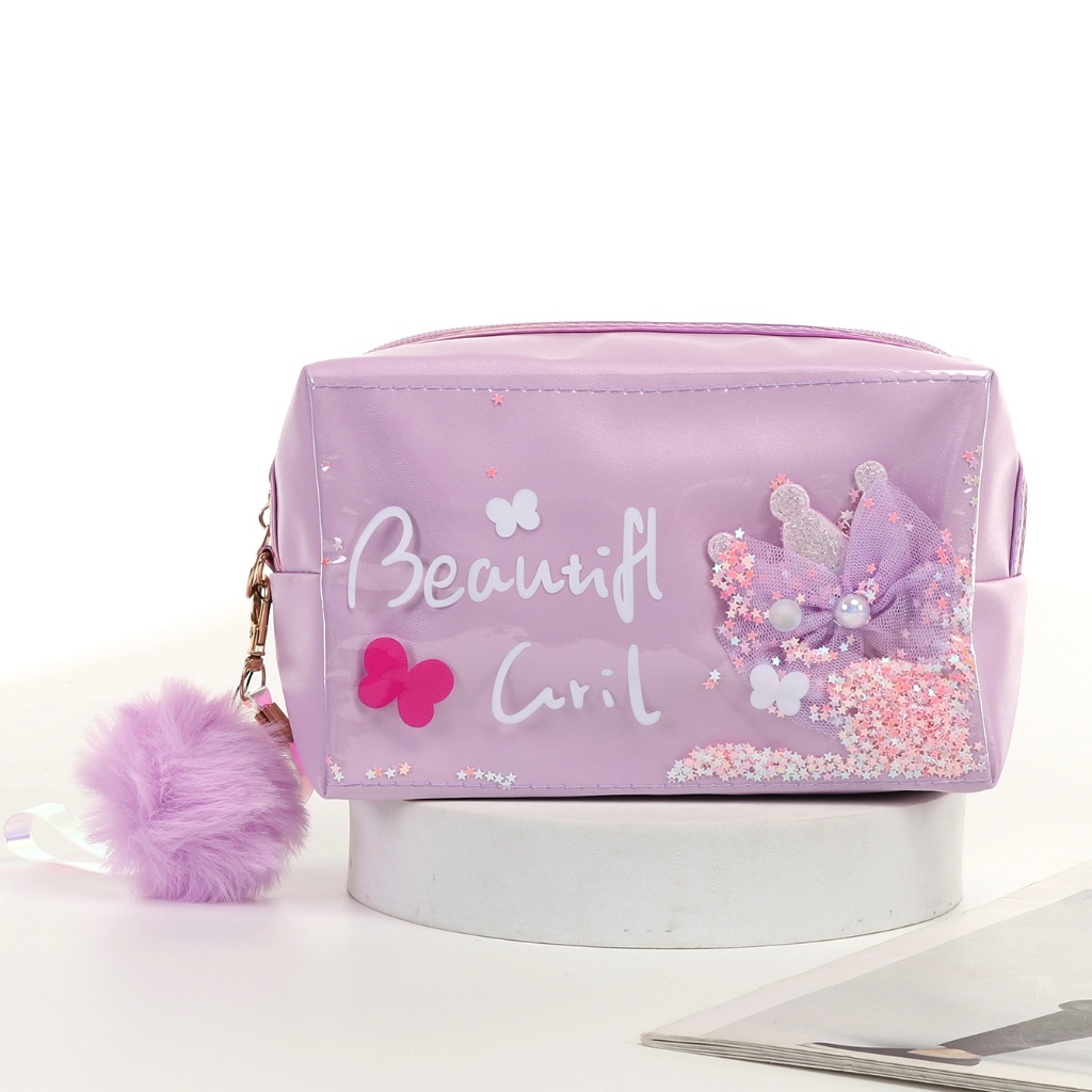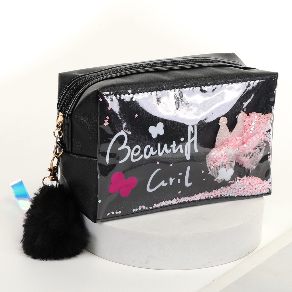 Bolsa Estojo Cosmética Com Design De Gato Fofo Com Pompom