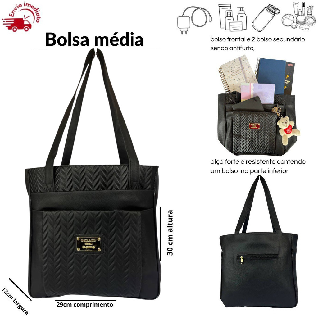 Bolsa Femenina Grande de Ombro Elegante Reforçada 3 Divisorias Para Trabalho Faculdade Cabe Notebook