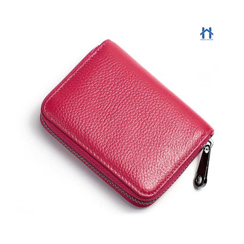 Bolsa Feminina Porta Cartões com Zíper Multi-slot Couro Colorido