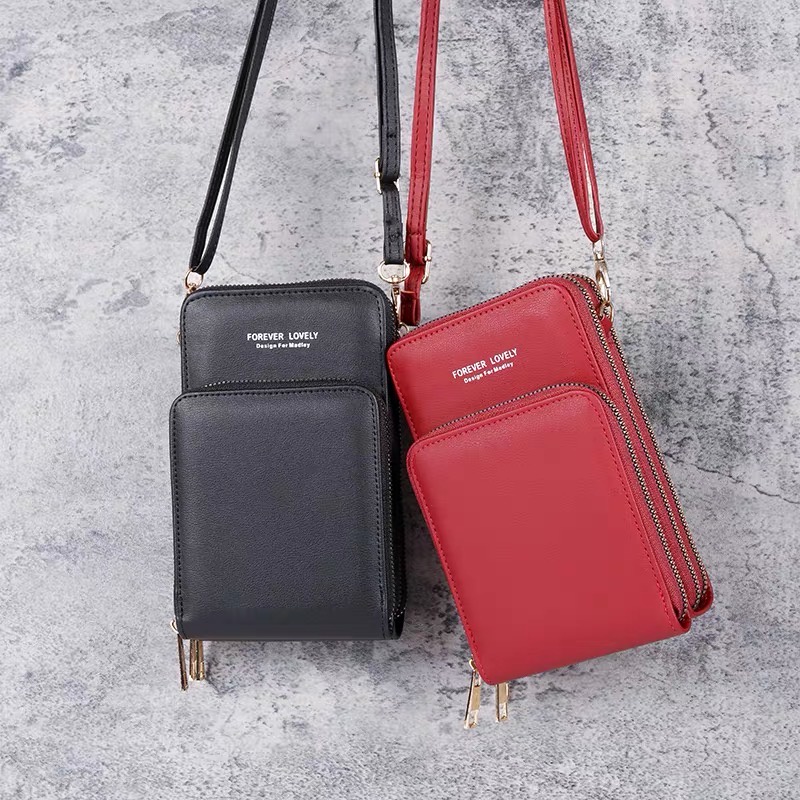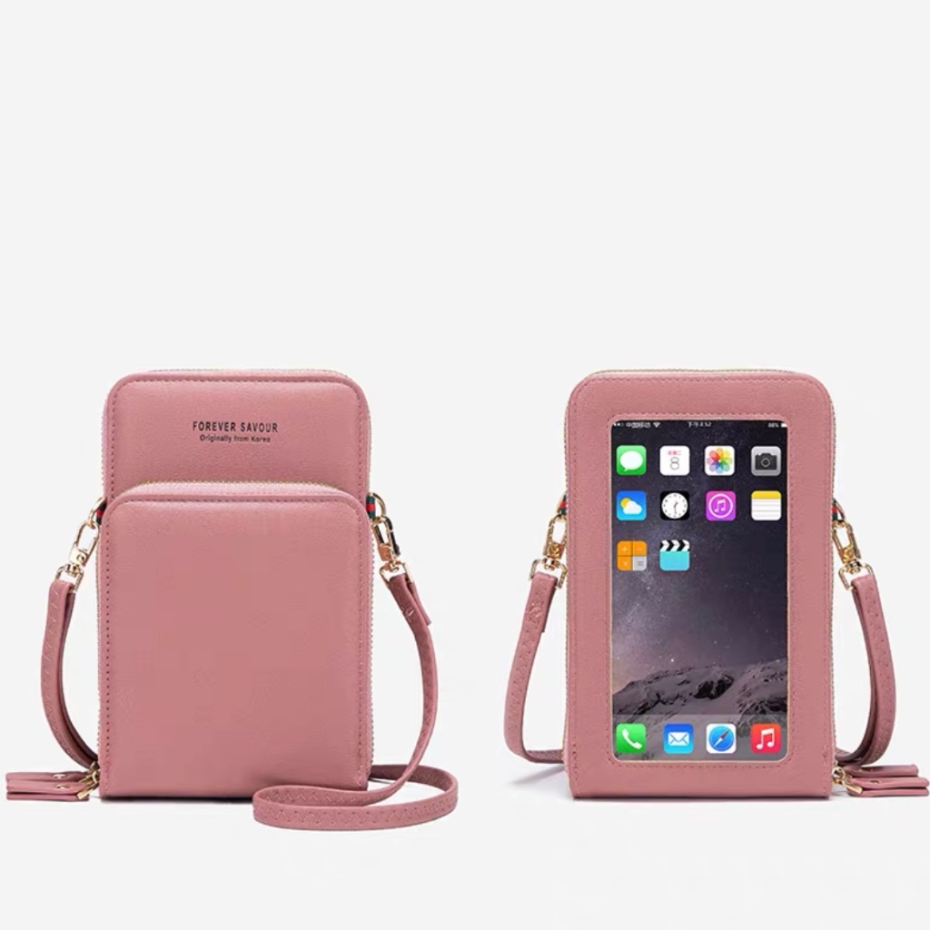 Bolsa Feminina Porta Celular com 3 Divisorias Transversal Tela Sensivel Touch