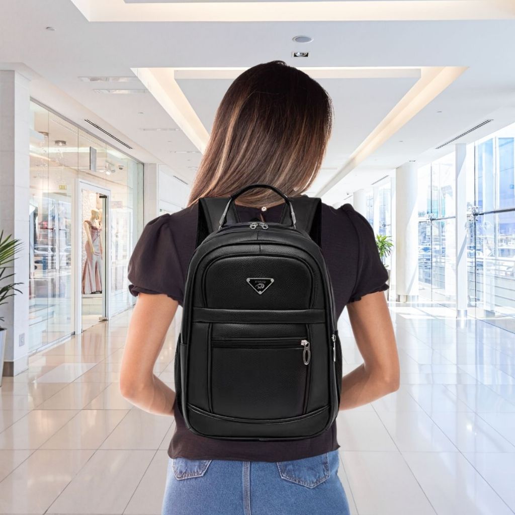 Bolsa Mochila de Couro Universitária Feminina MÉDIA Espaçosa Reforçada Com Cabo de Aço Notebook