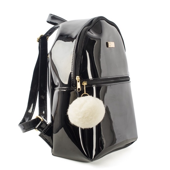 Bolsa Mochila feminina em verniz Premium com pompom Super Promoção