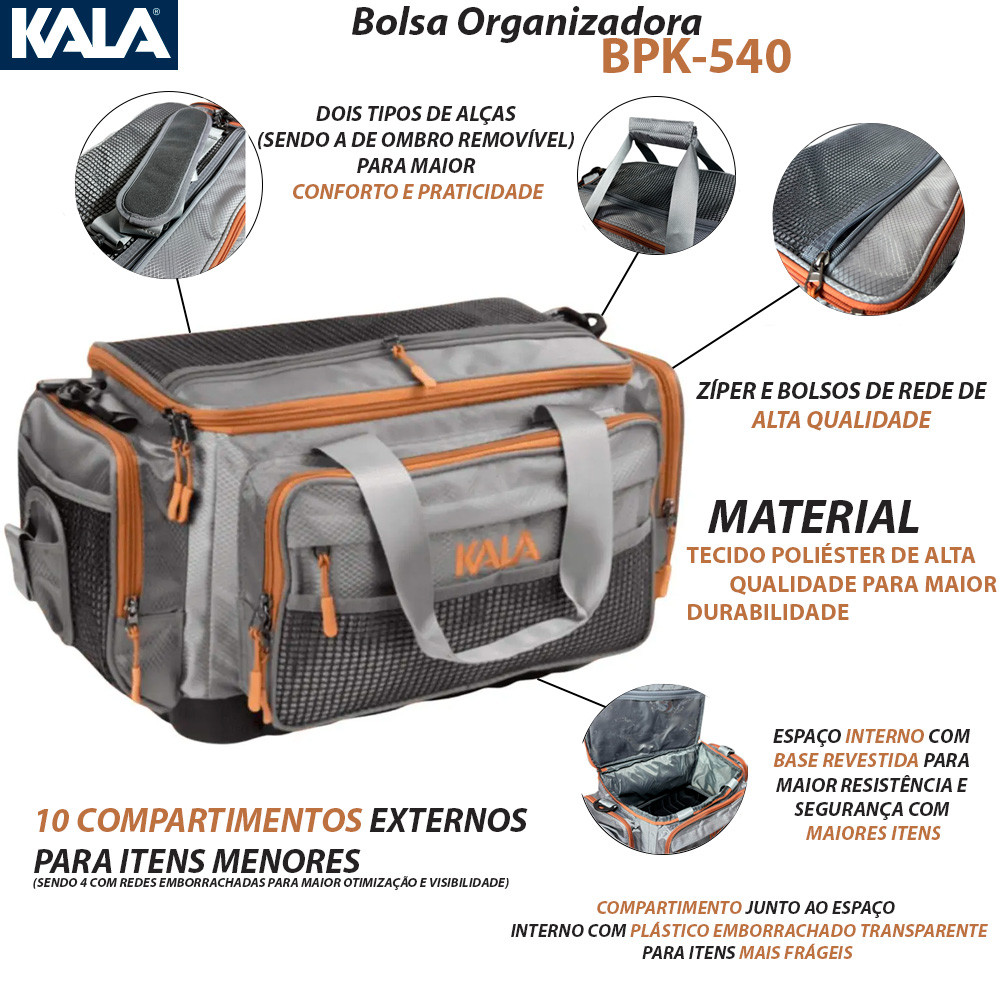 Bolsa Organizadora Pesca Kala BPK 540 Poliéster Alta Qualidade Base Revestida 12 Compartimentos