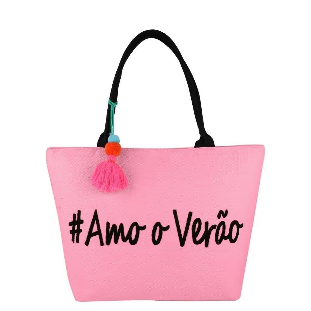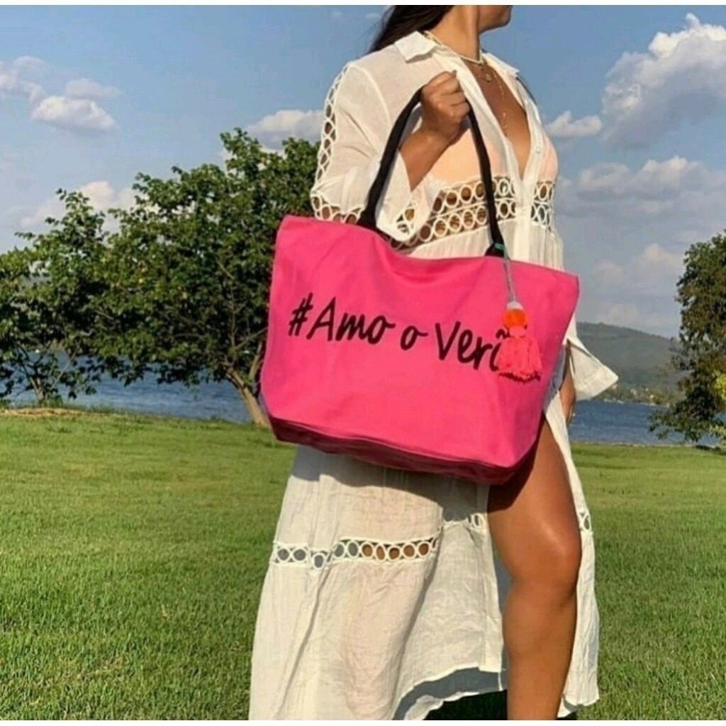 Bolsa Praia Piscina Modelo Sacola Tecido Feminina Amo o Verão / Summer Time