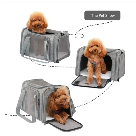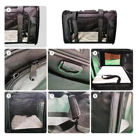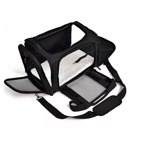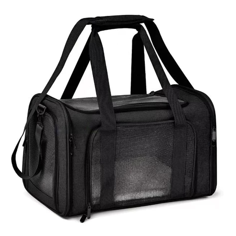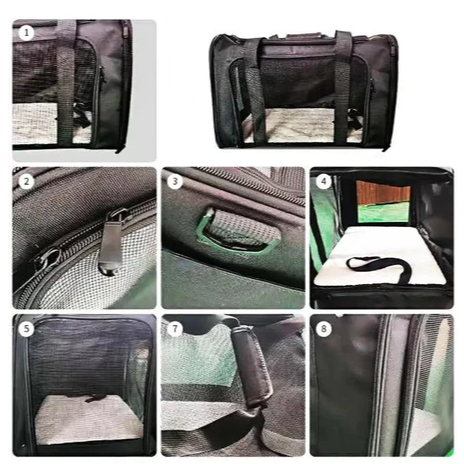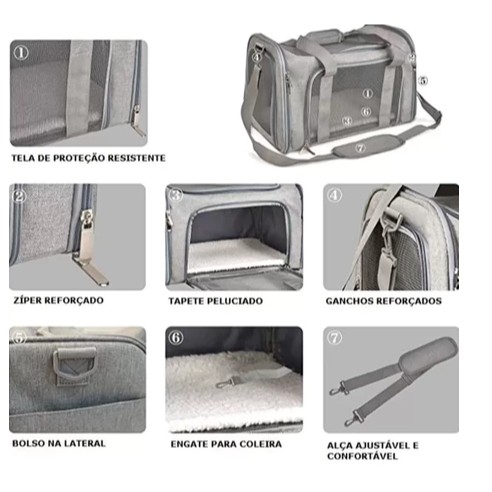 Bolsa Transporte Pet Transversal Cachorro Gato Viagem Passeio Cão Caixa Telado Cor Preta ref: 1844-0