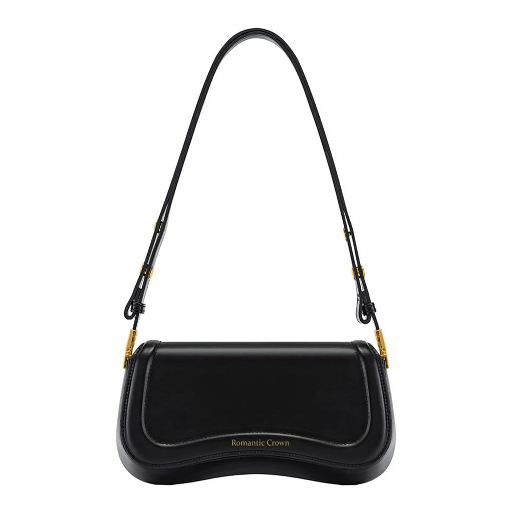 Bolsa de Ombro Feminina com Alça Ajustável, Bolsa Feminina Elegante com Couro Preto, Bolsa Transversal Tiracolo Presente