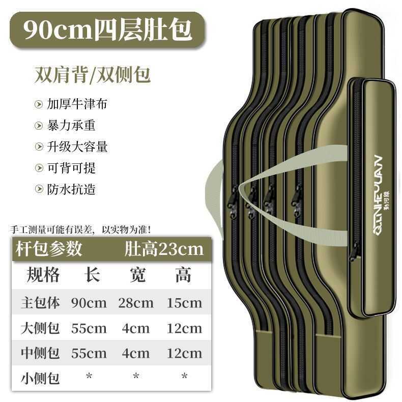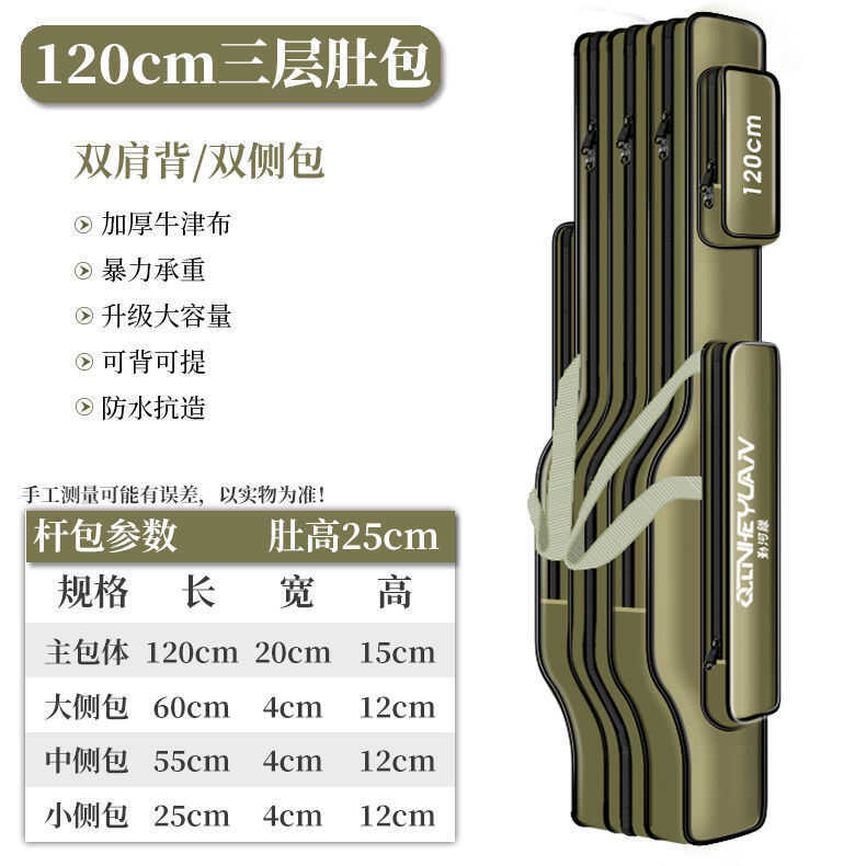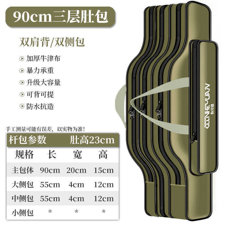 Bolsa de equipamento de pesca, vara de pesca à prova d'água, barriga grande, 80cm-1.25m, camada dupla, três camadas, bol