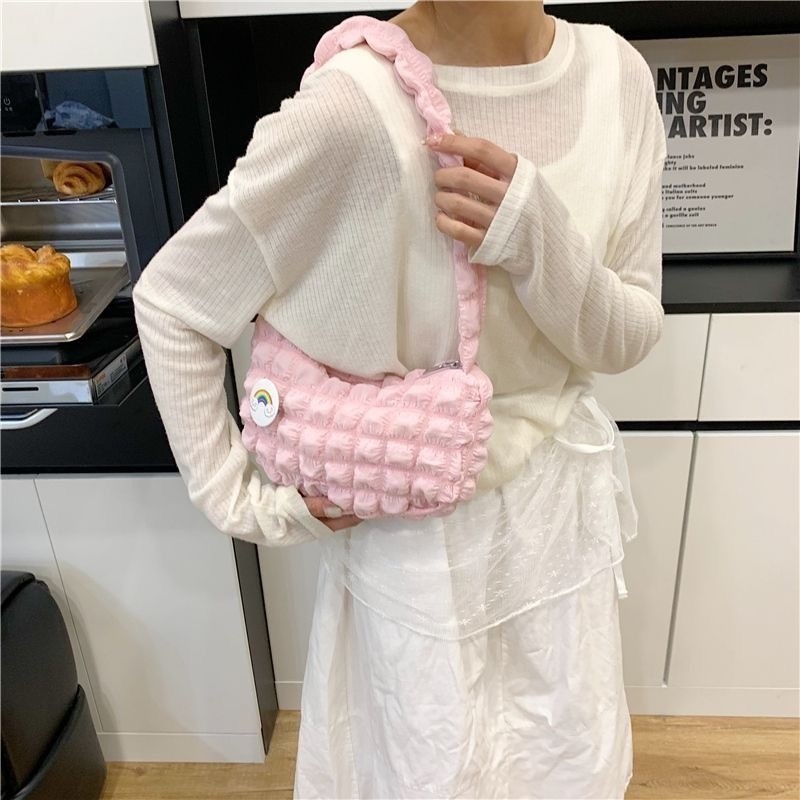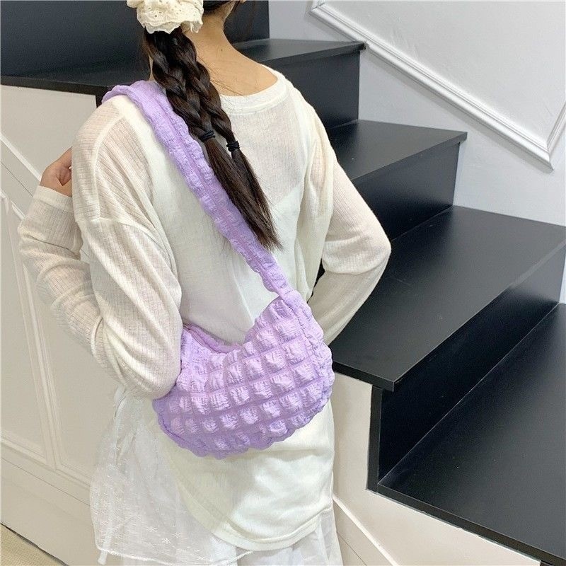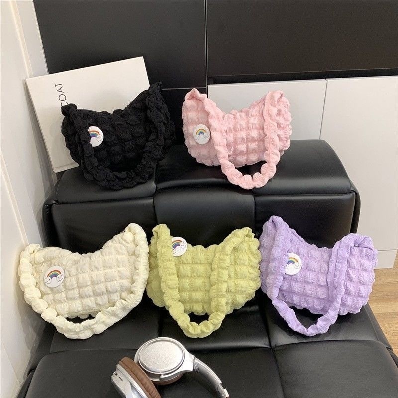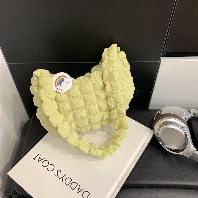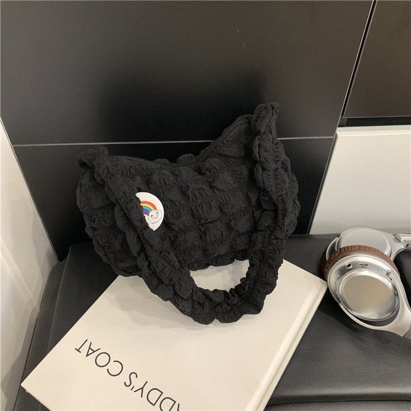 Bolsa feminina com pregas estilo axila | Bolsa de mão jovem com padrão de nuvem