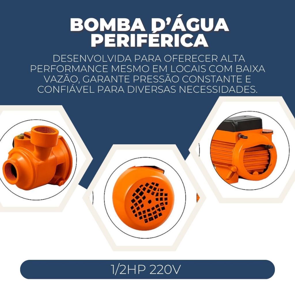 Bomba D’Água Periférica 1/2HP 220V 33L/Min Silenciosa Pressão Constante Alta vida util Profissional