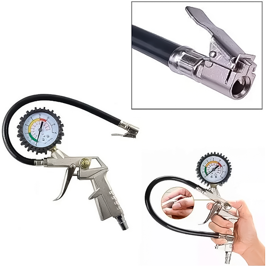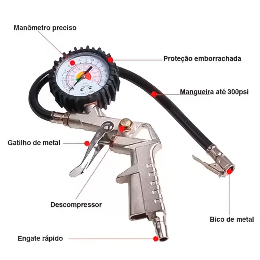Bomba De Ar Calibrador De Pneu Com Mangueira e Manômetro Para Carro Moto Bicicleta