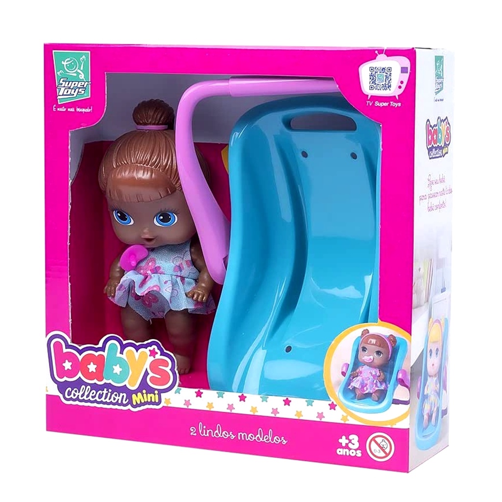 Boneca Babys Collection Mini Com Bebê Conforto Menina - Super Toys