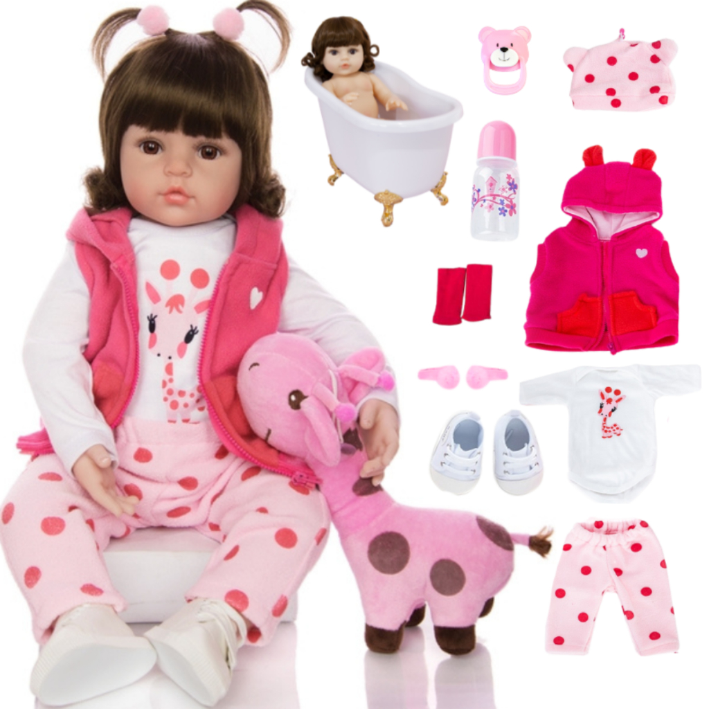 Boneca Bebê Reborn Girafinha Luxo Nova Realista Pode Dar Banho Envio Imediato