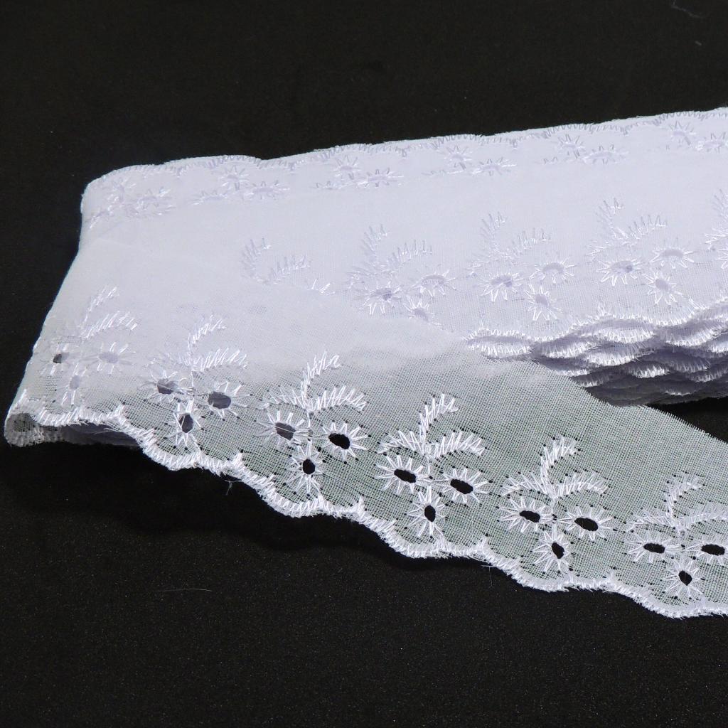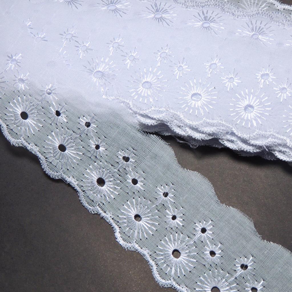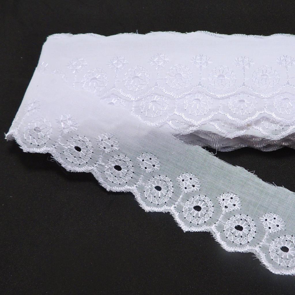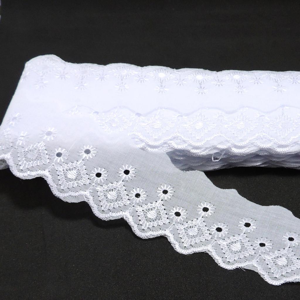Bordado Inglês 5cm Peça com 13,7 metros - Lese Bico Tira Bordada - 90% Poliéster 10% Algodão