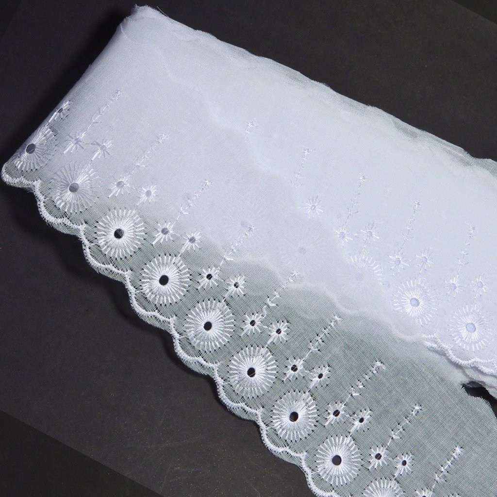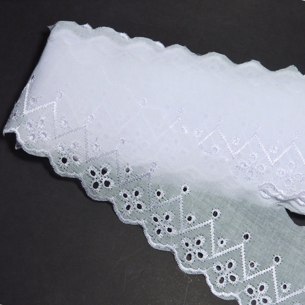 Bordado Inglês 7cm Peça com 13,7 metros - Lese Bico Tira Bordada - 90% Poliéster 10% Algodão