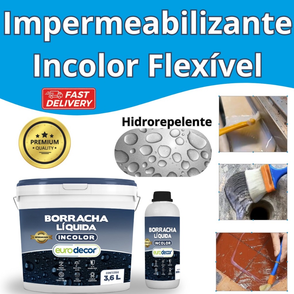Borracha Líquida Incolor 900ml e 3,6KG Impermeabiliza Telhados e Calhas
