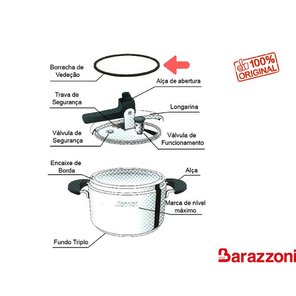 Borracha Vedação Panela Pressão Barazzoni 5/7/9 L Original