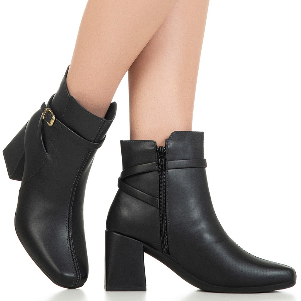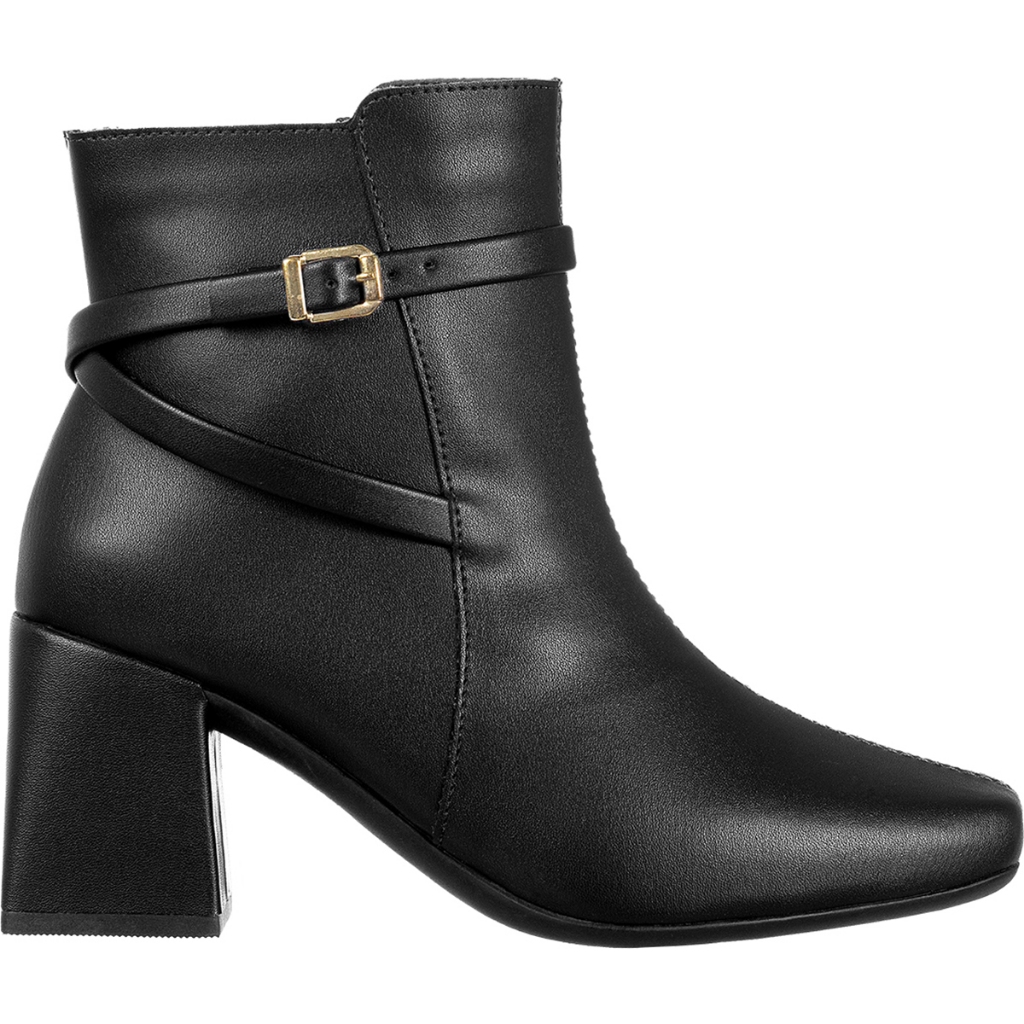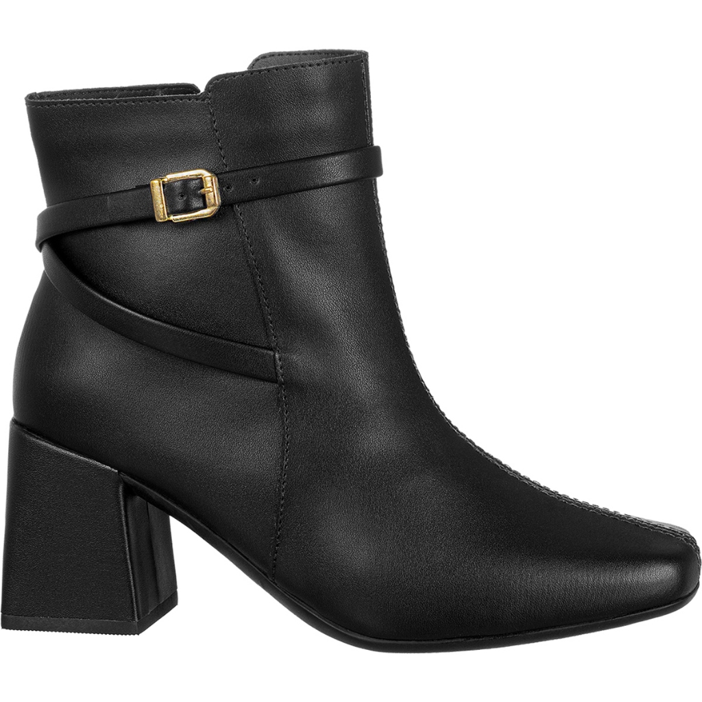 Bota Feminina GiGiL Bico Quadrado Cano Curto Salto Bloco Médio Detalhe Lateral Fivela Clássica
