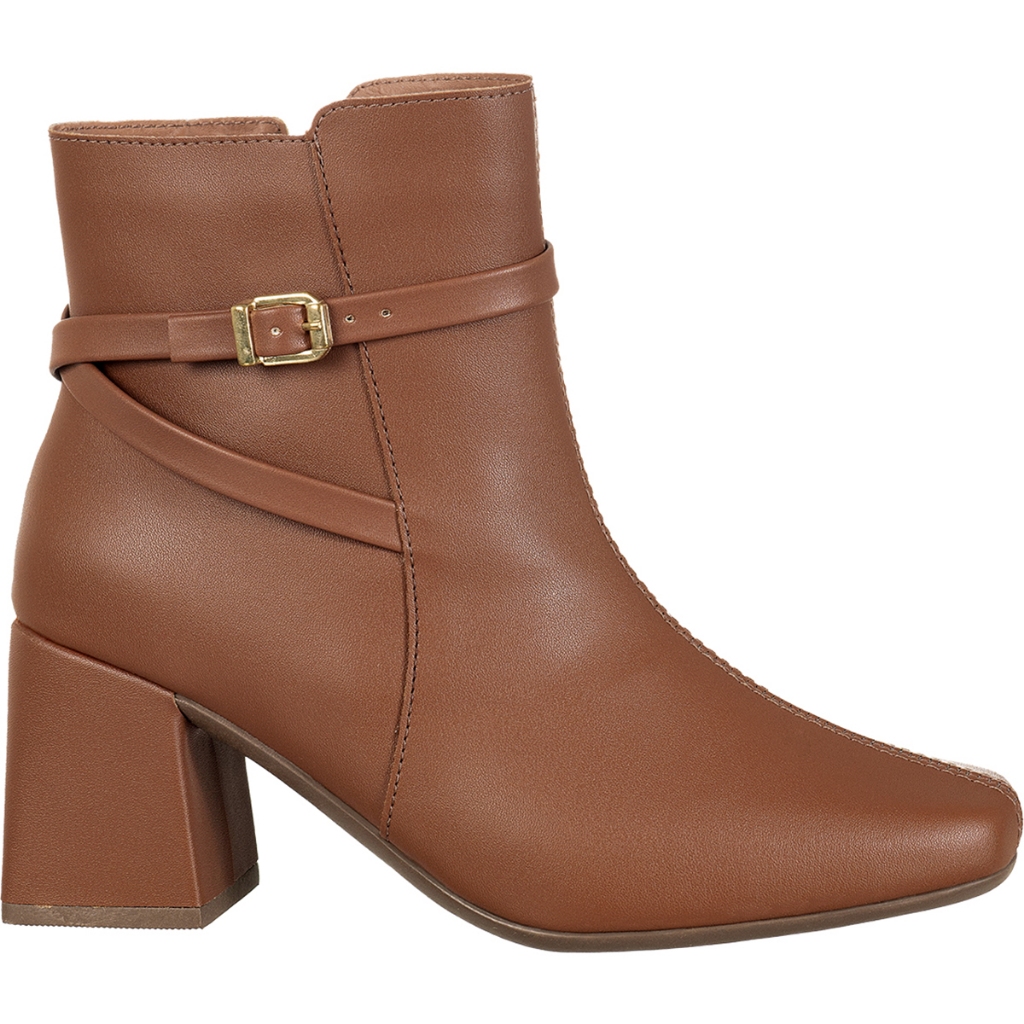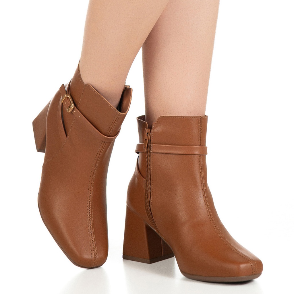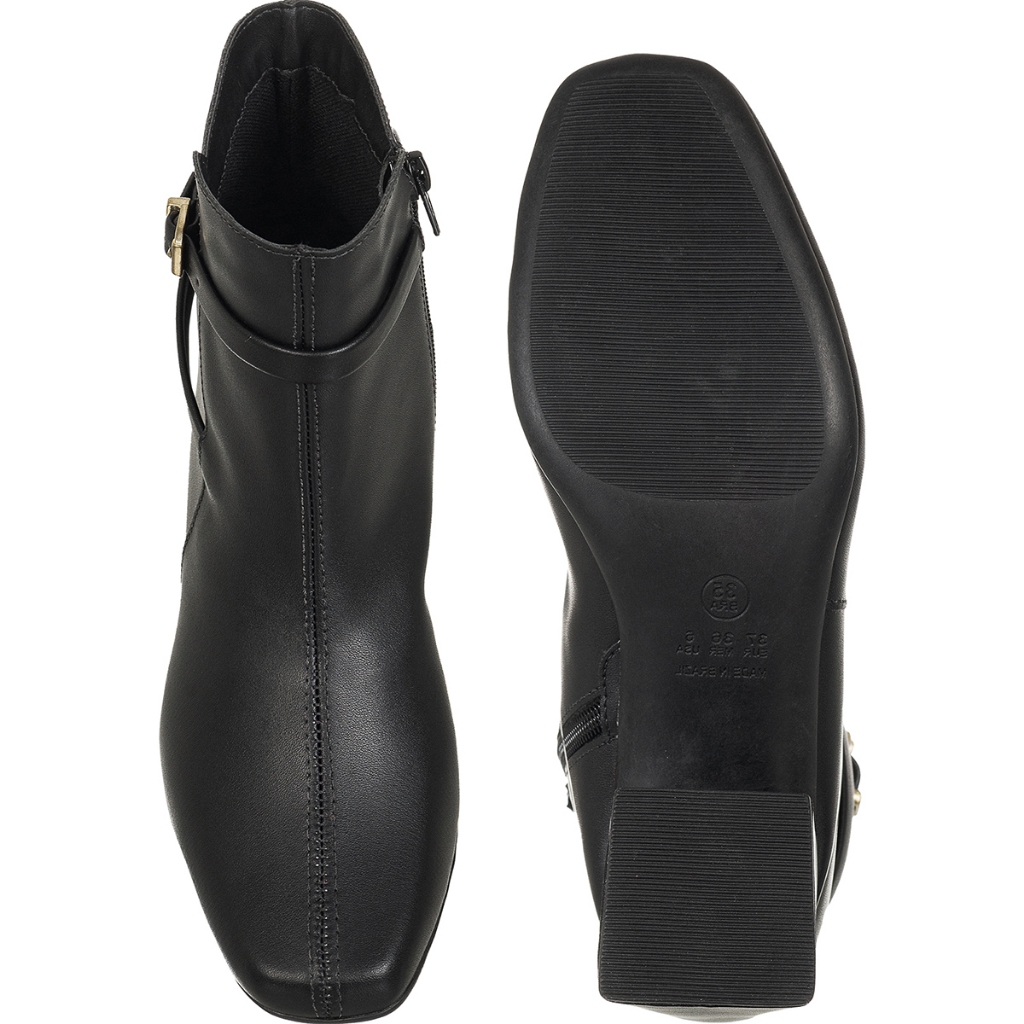 Bota Feminina GiGiL Bico Quadrado Cano Curto Salto Bloco Médio Detalhe Lateral Fivela Clássica