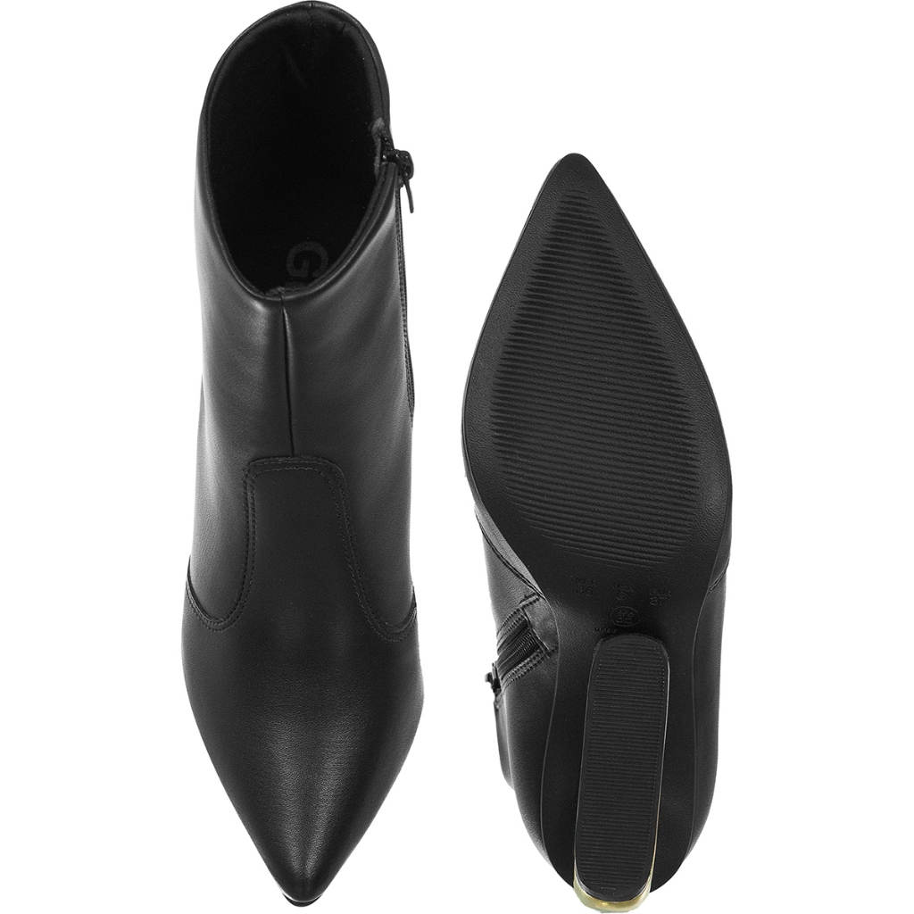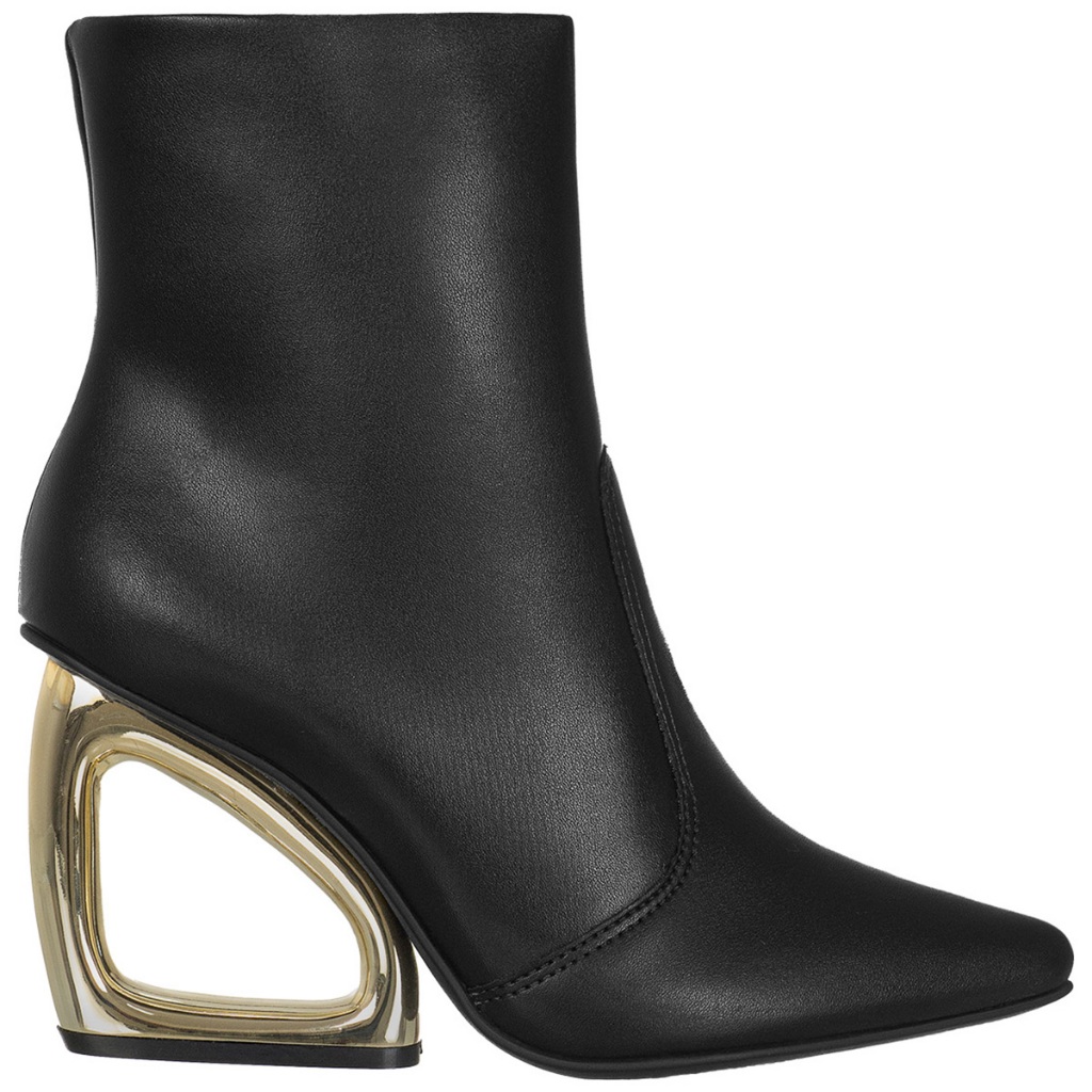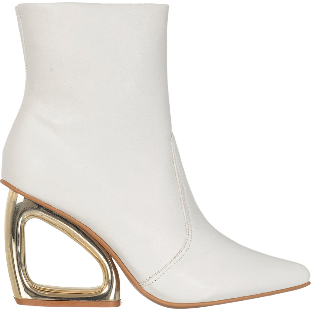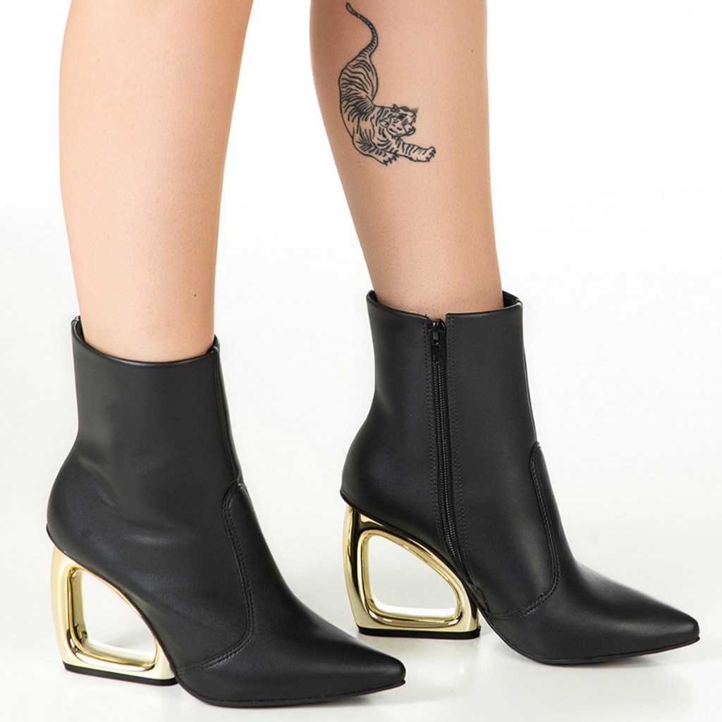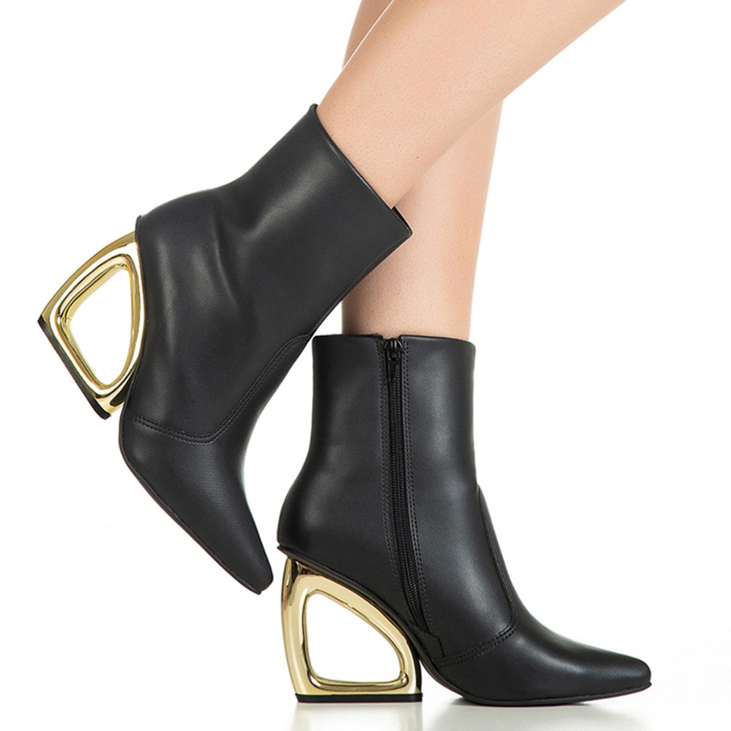 Bota Feminina GiGiL Salto Metalizado Geométrico Cromado Vazado Bico Fino Cano Curto Fashion Elegante