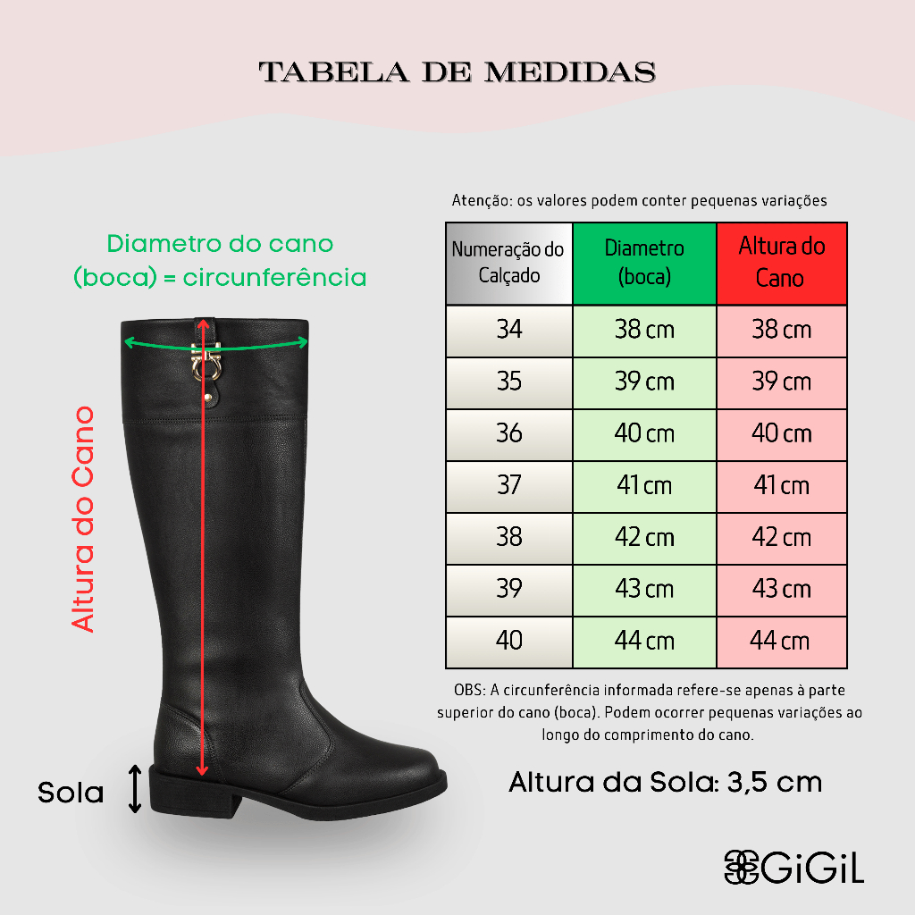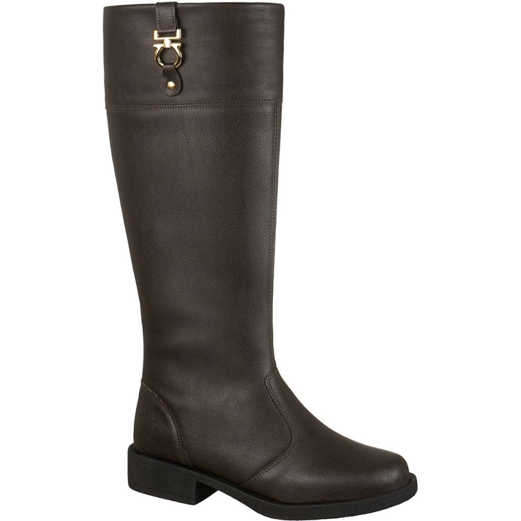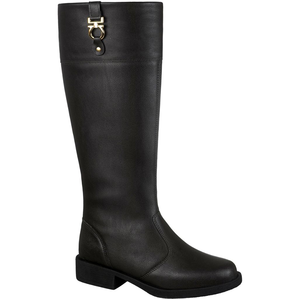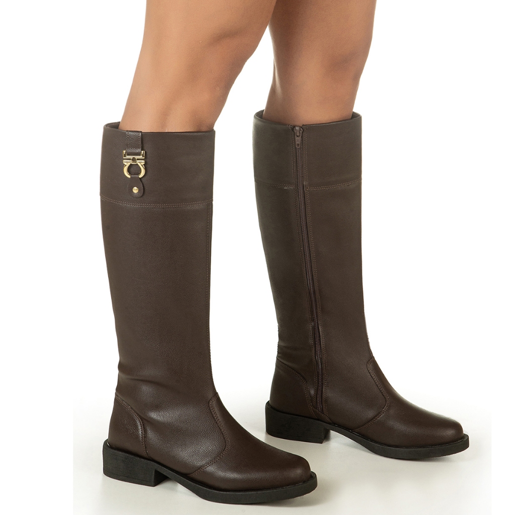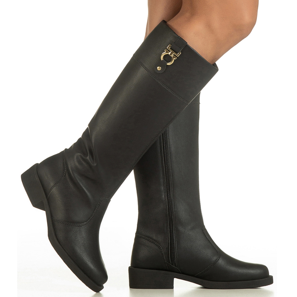 Bota Feminina Montaria Cano Longo Bico Arredondado Salto Grosso Baixo Detalhe Metal Montana GiGiL