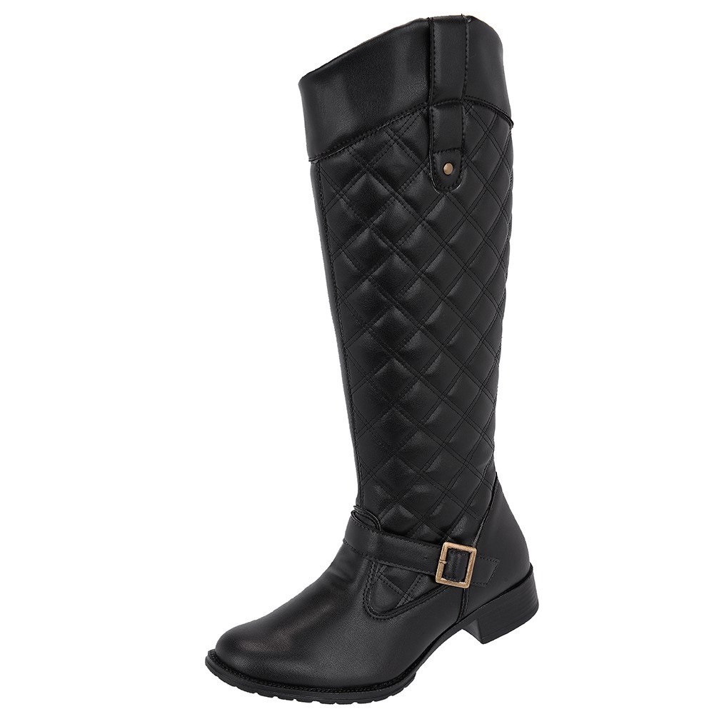 Bota Montaria Feminina Salto Baixo Ziper Lateral Cano Alto Matelasse