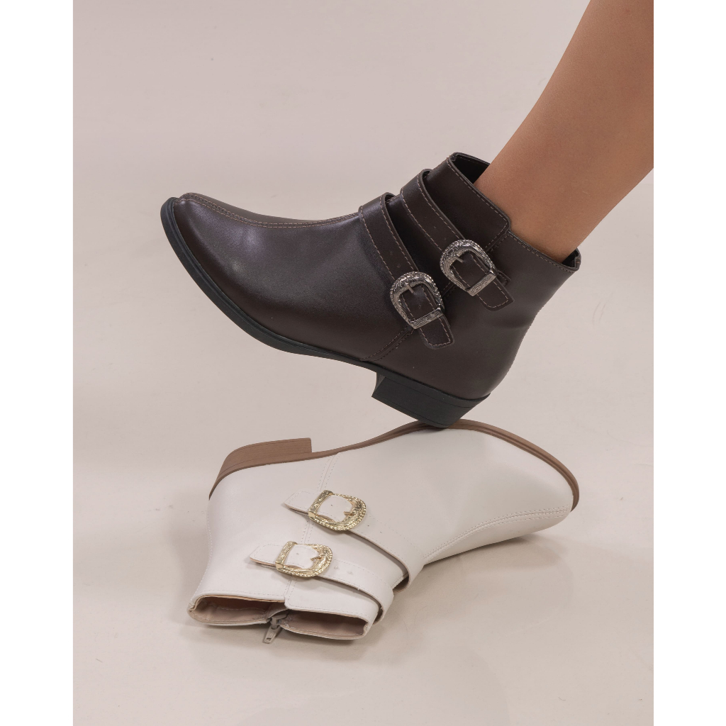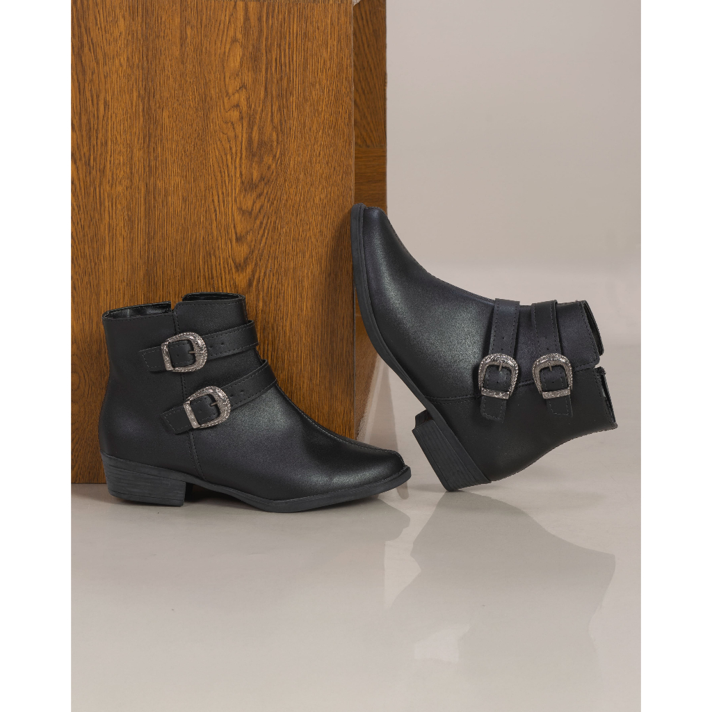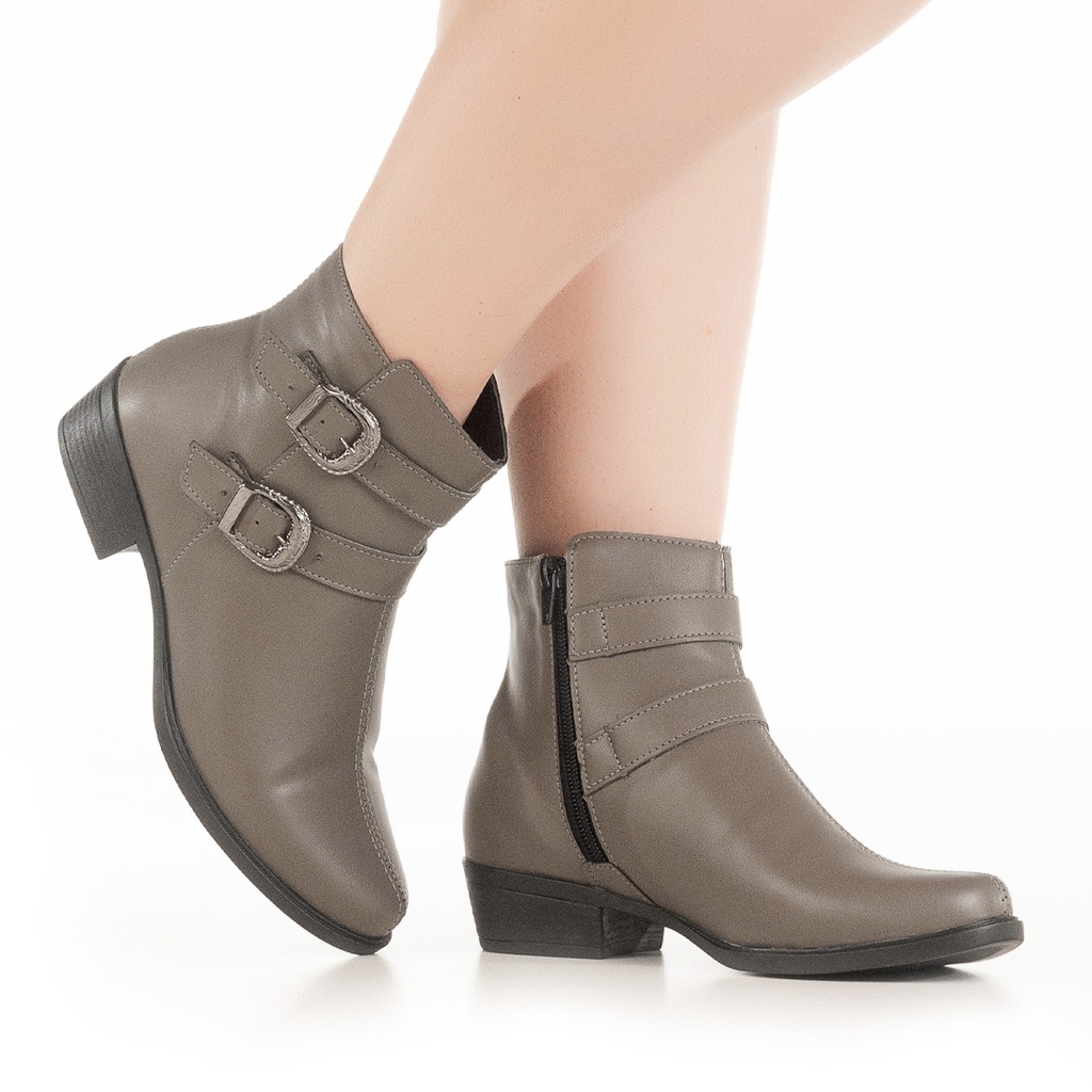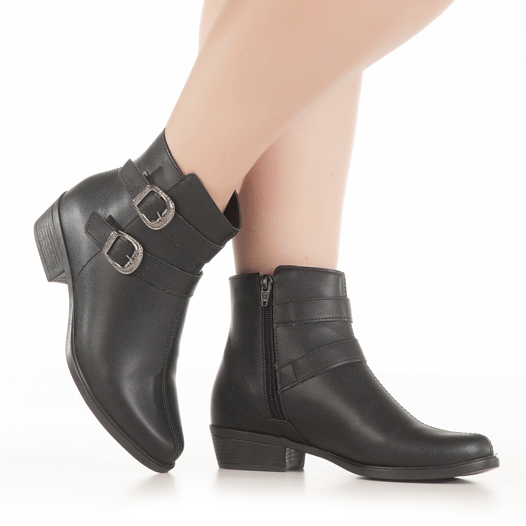 Bota Salto Rasteira Confort Cano Baixo Detalhe Fivela Chyrro