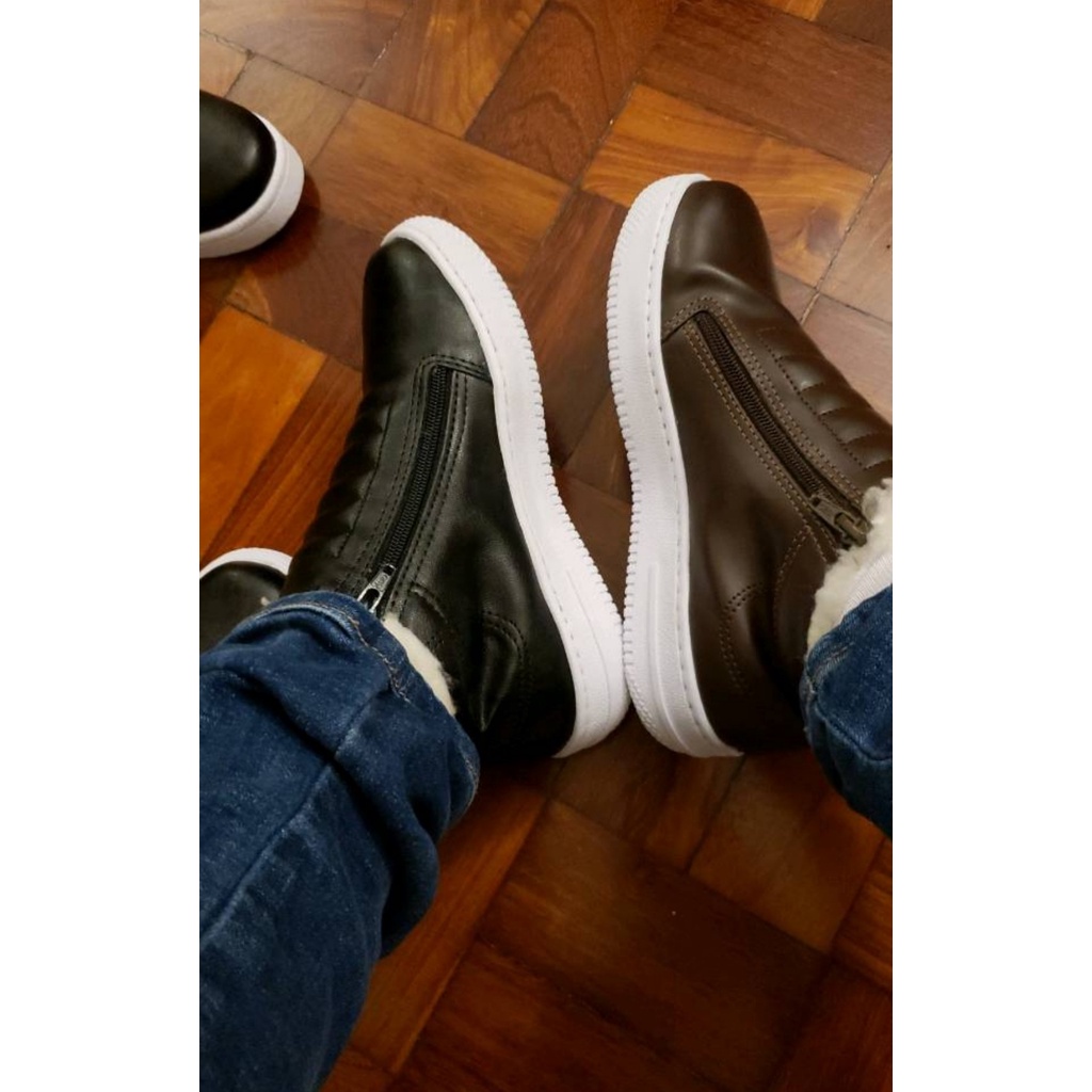 Botinha De Pelo e Lã Unissex De Inverno Quentinha Frio