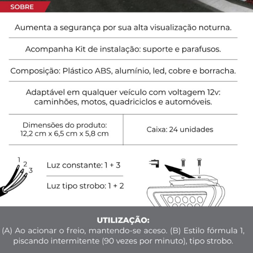 Brake Light Triangular modelo Formula F1 Esportivo 12v Universal