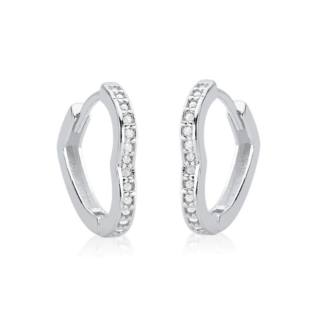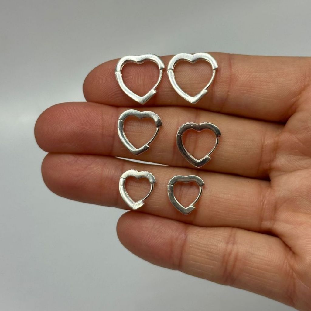 Brinco Argola de Prata 925 Click Coração com Zircônias | Diversos Tamanhos