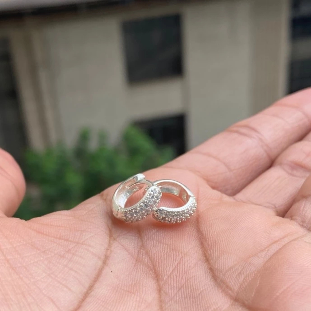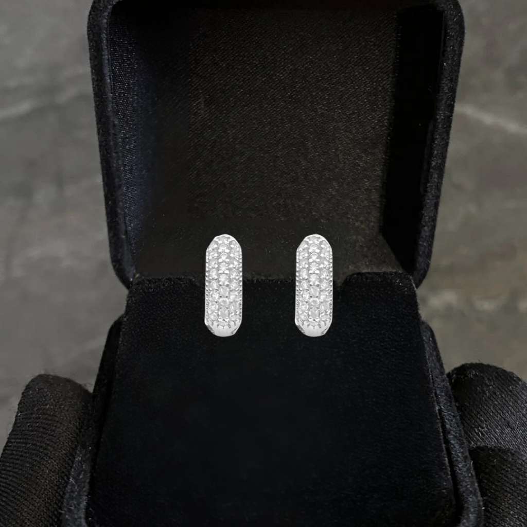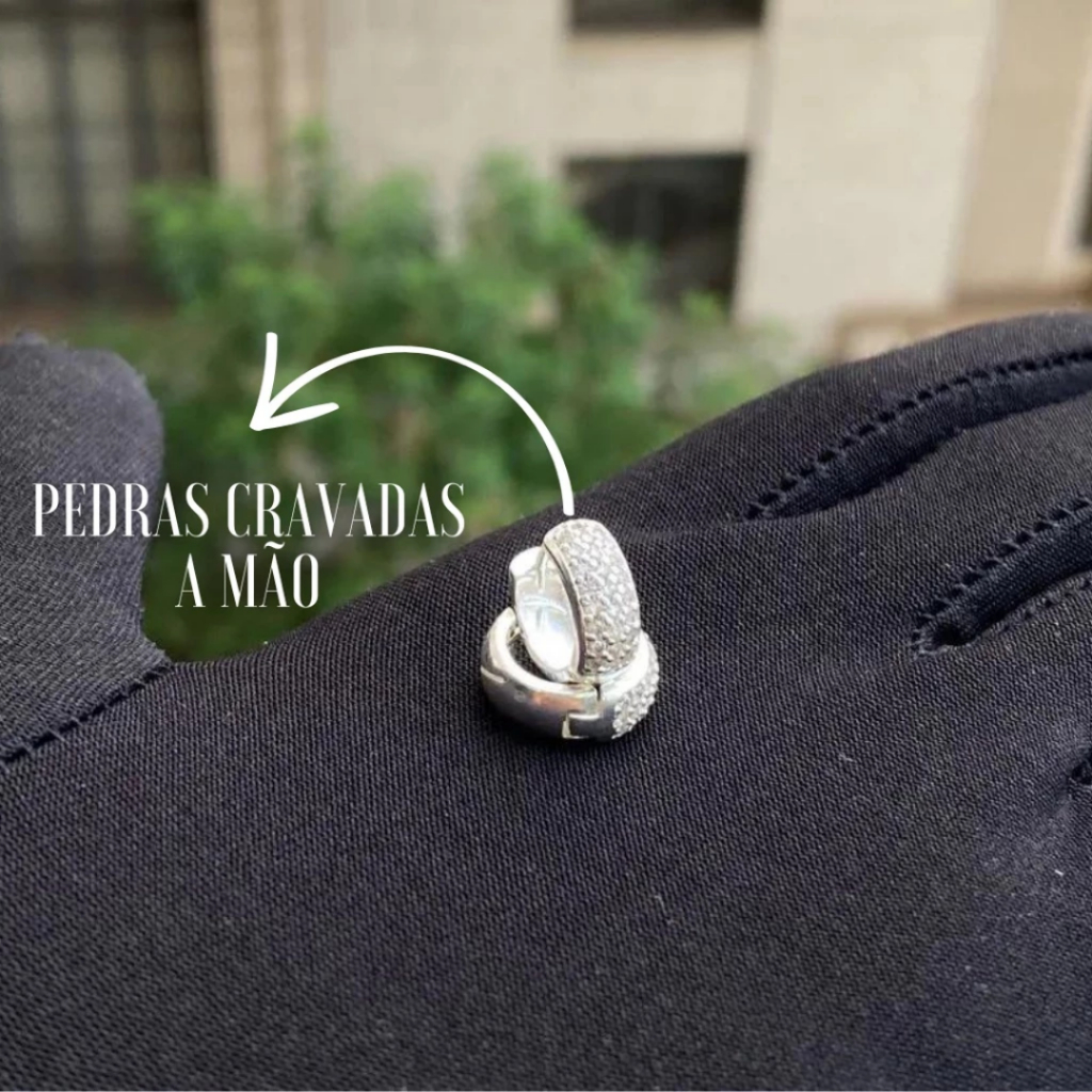 Brinco Cravejado Argola Prata 925 banhado Estilo Neymar Unissex Zirconia