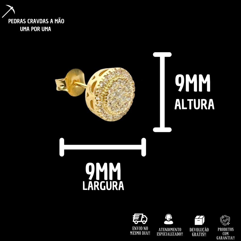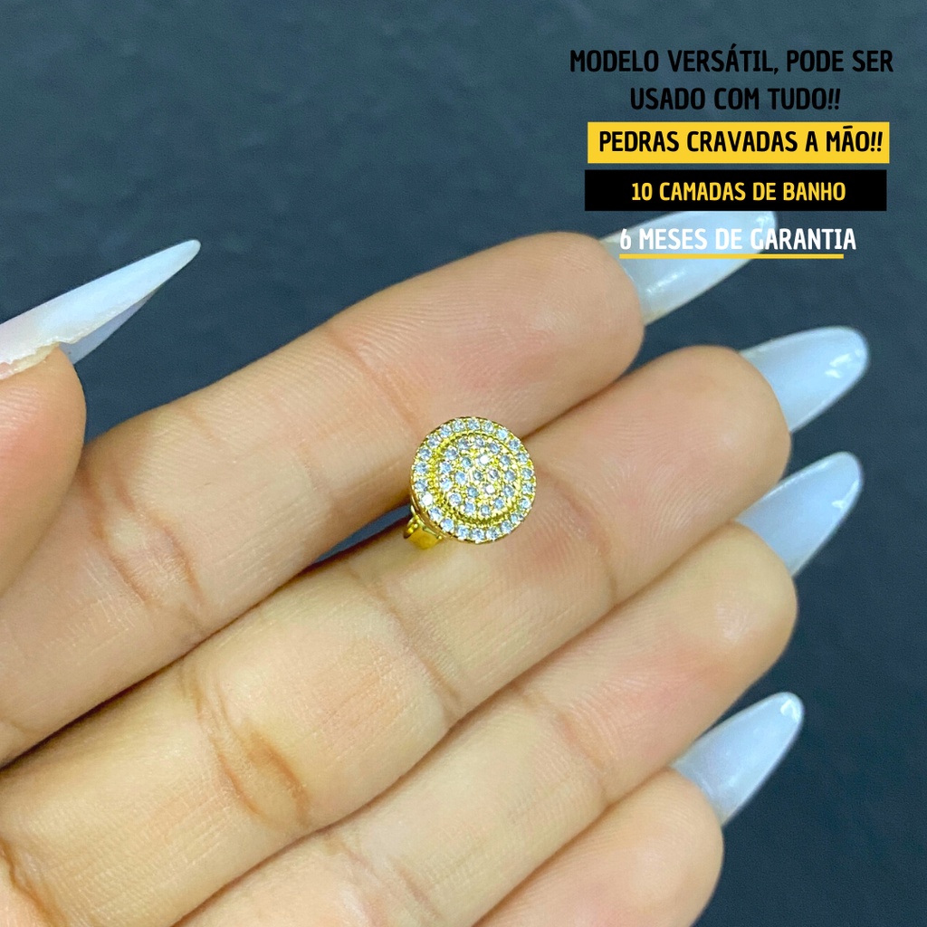 Brinco De Ouro Redondo Cravejado De Zircônia Com 40 pedras Masculino Unidade Banhado Ouro 24k