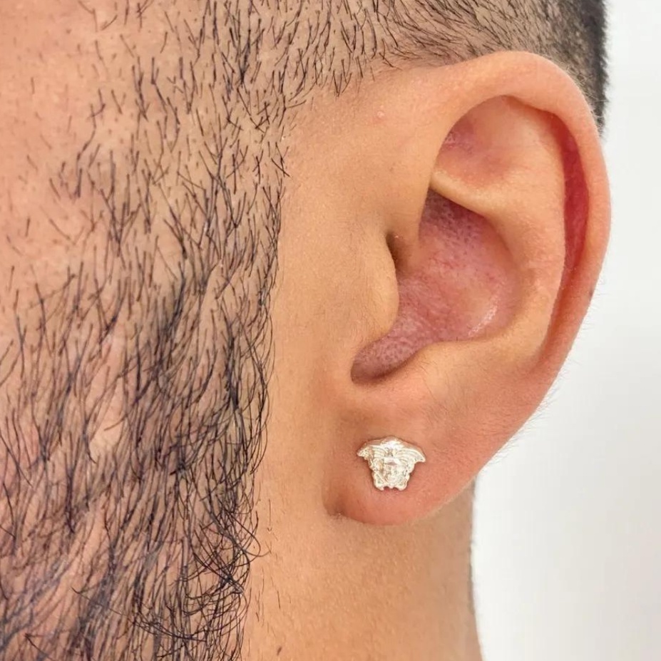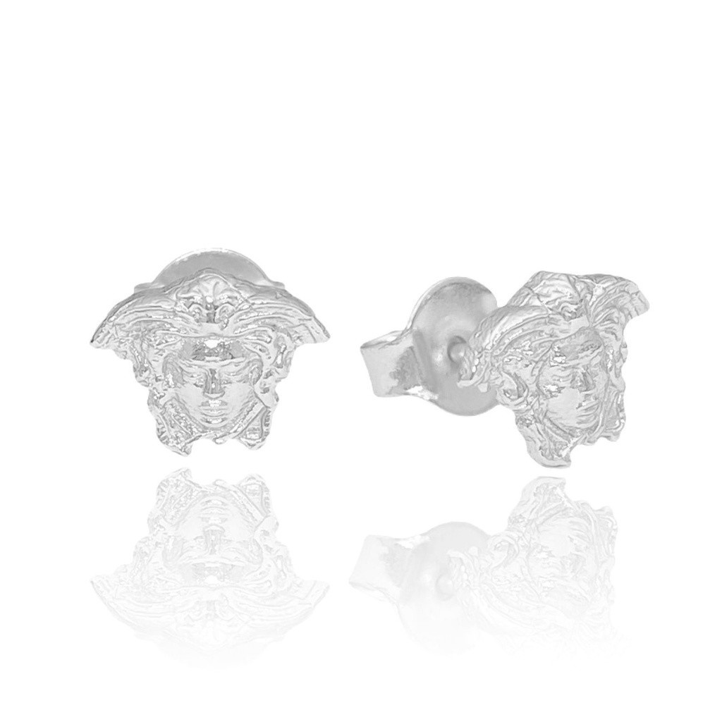 Brinco De Prata Masculina Banho de Prata 925 Italiana Rosto Medusa