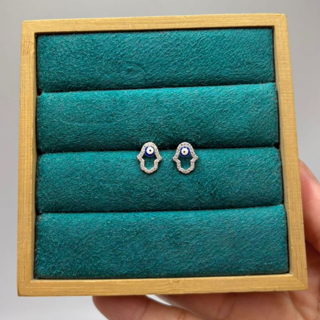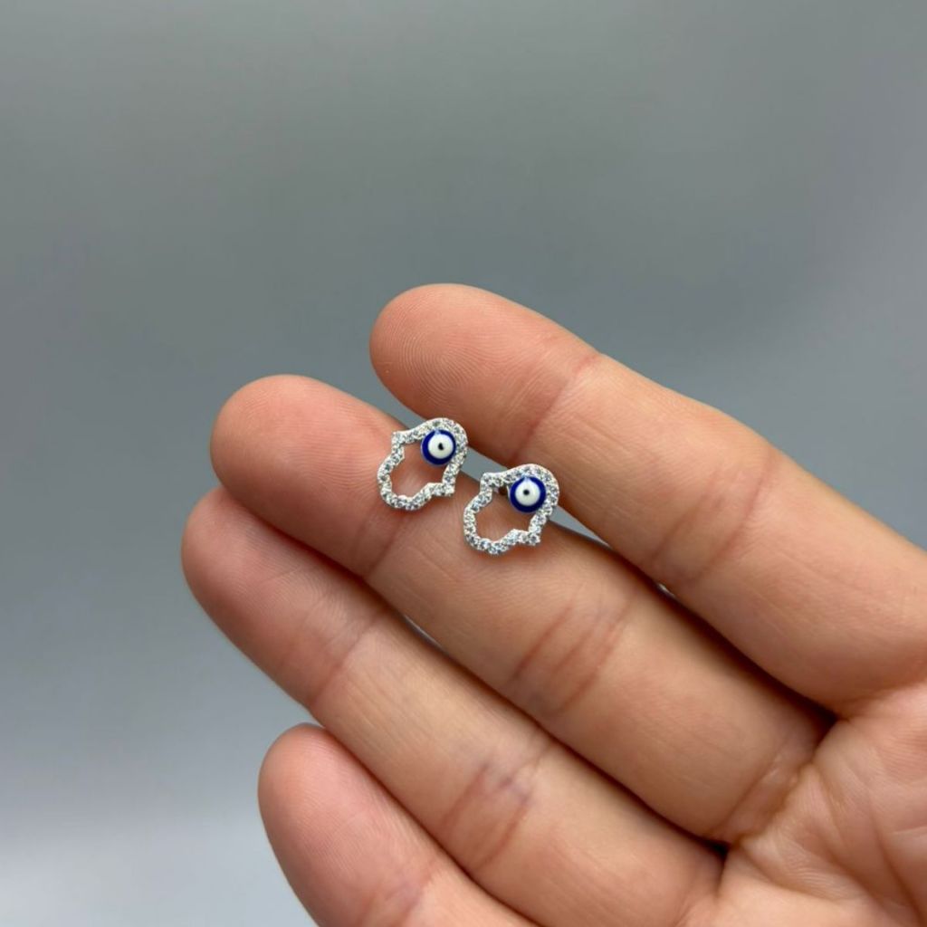 Brinco Feminino Mão De Fatima Olho Grego Prata 925