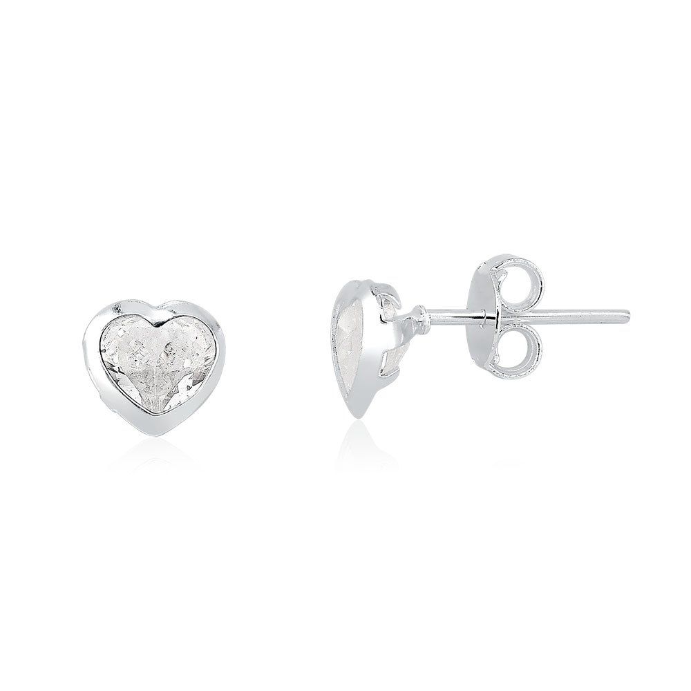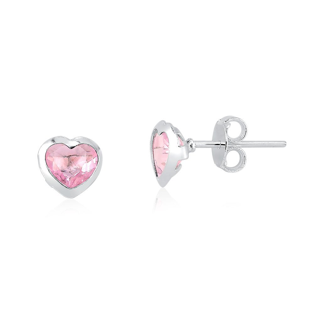 Brinco Feminino de Prata 925 Coração com 4mm | Diversas Cores