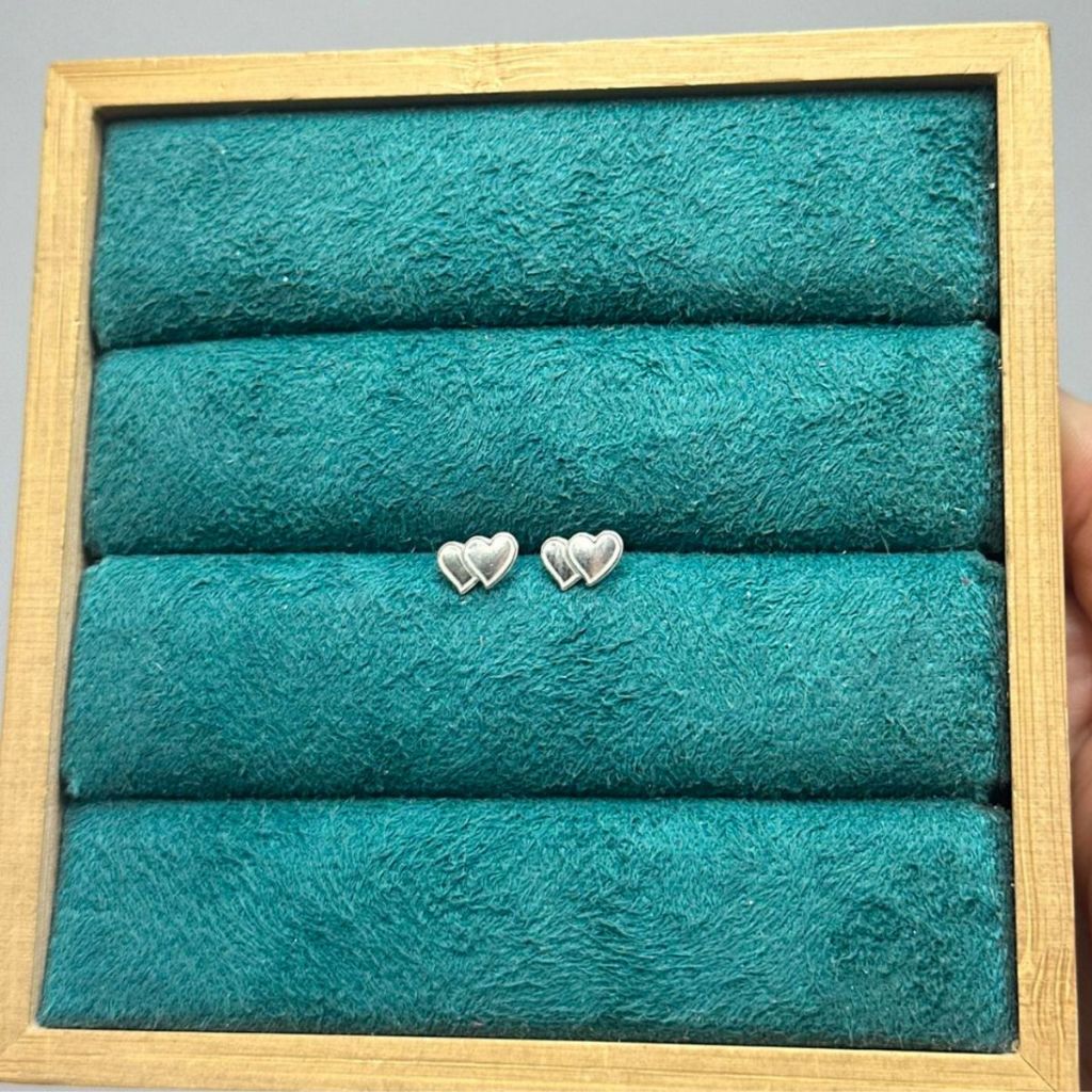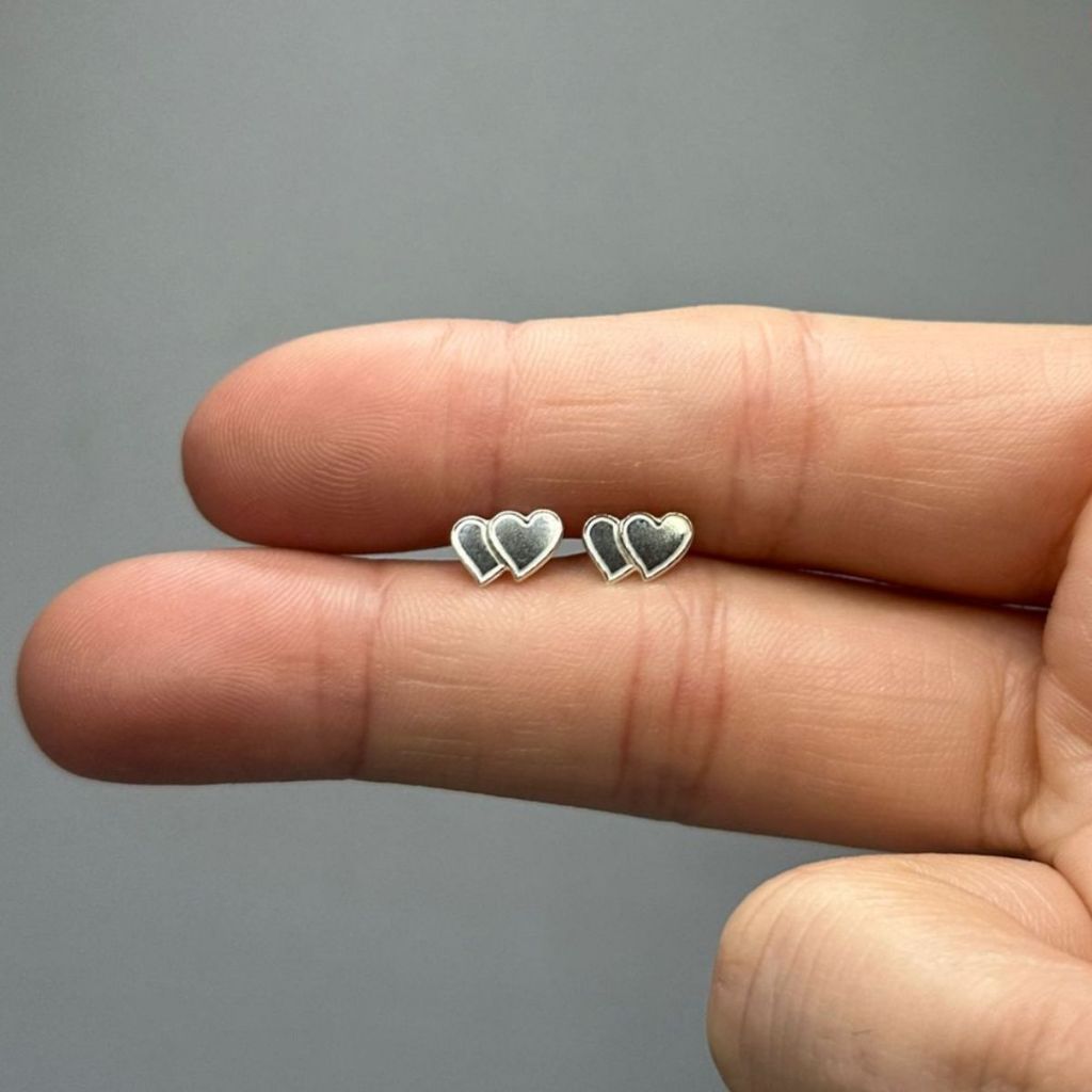 Brinco Feminino de Prata 925 Dois Corações Lisos