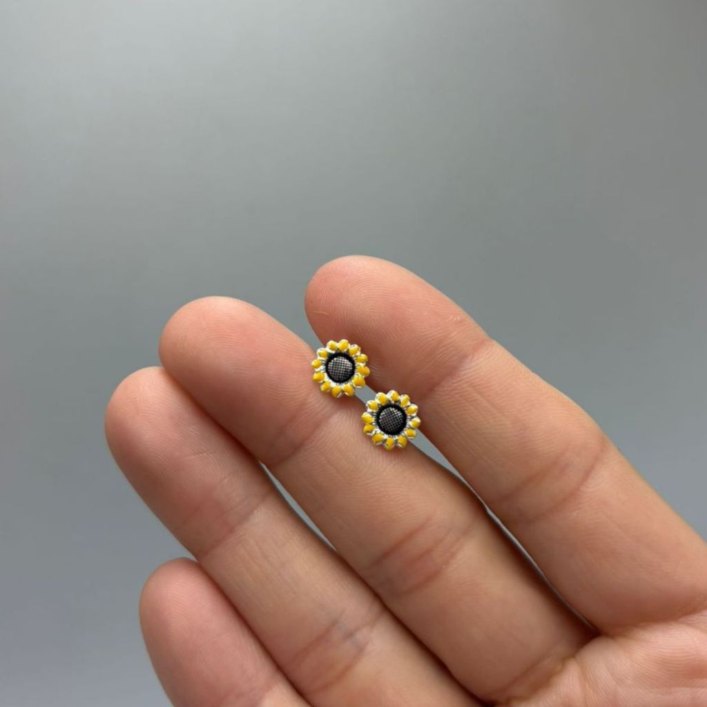 Brinco Feminino de Prata 925 Girassol com Resina