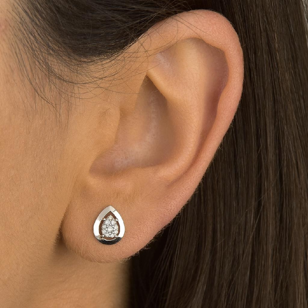 Brinco Gota com Diamantes 0.136CT em Ouro Branco 18k - 750