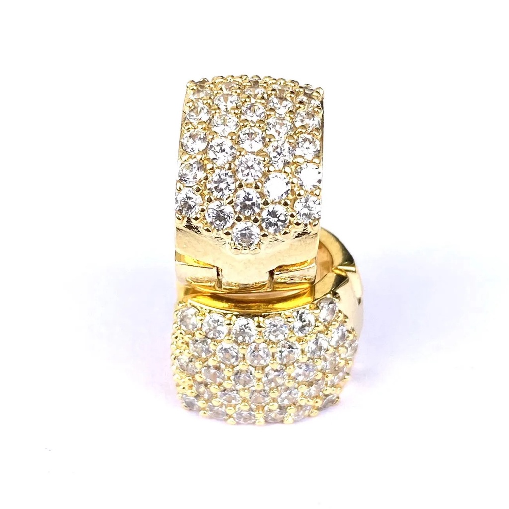 Brinco Masculino Argola Cravejada Brinco 32 Pedras Banhado a Ouro 24k