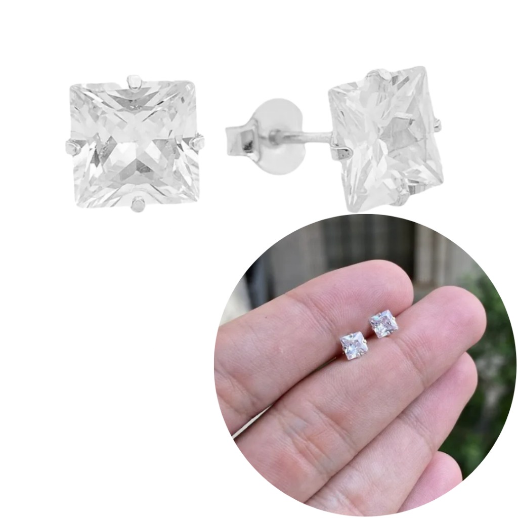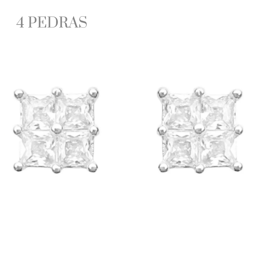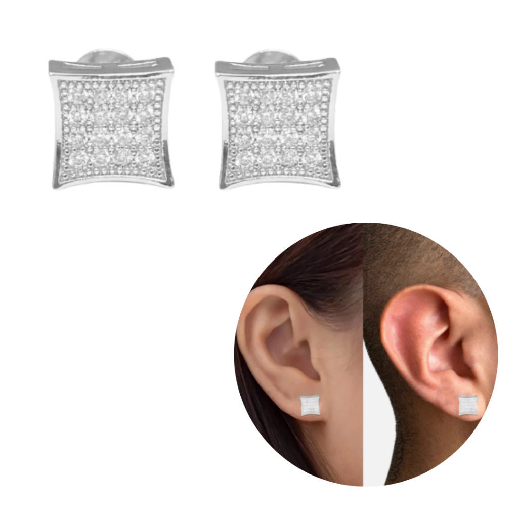 Brinco Masculino De Prata 925 Quadrado C/ Pedras Brilhantes Banhado a Prata 925 Brinco Cravejado