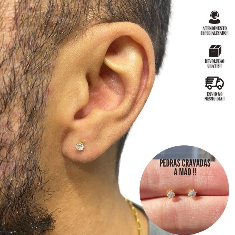 Brinco Masculino de Ouro 24k Brinco Brilhante Cravejado Banhado a Ouro